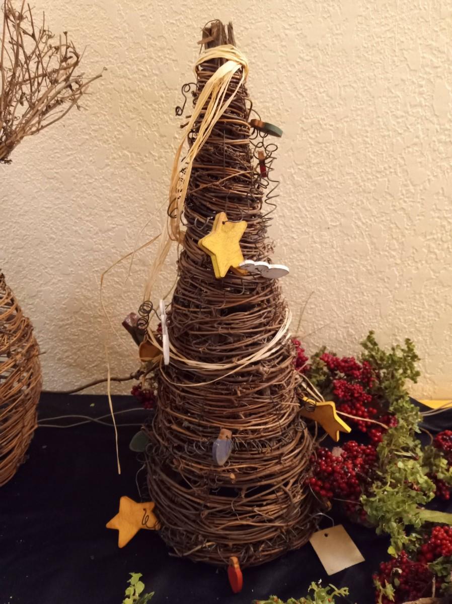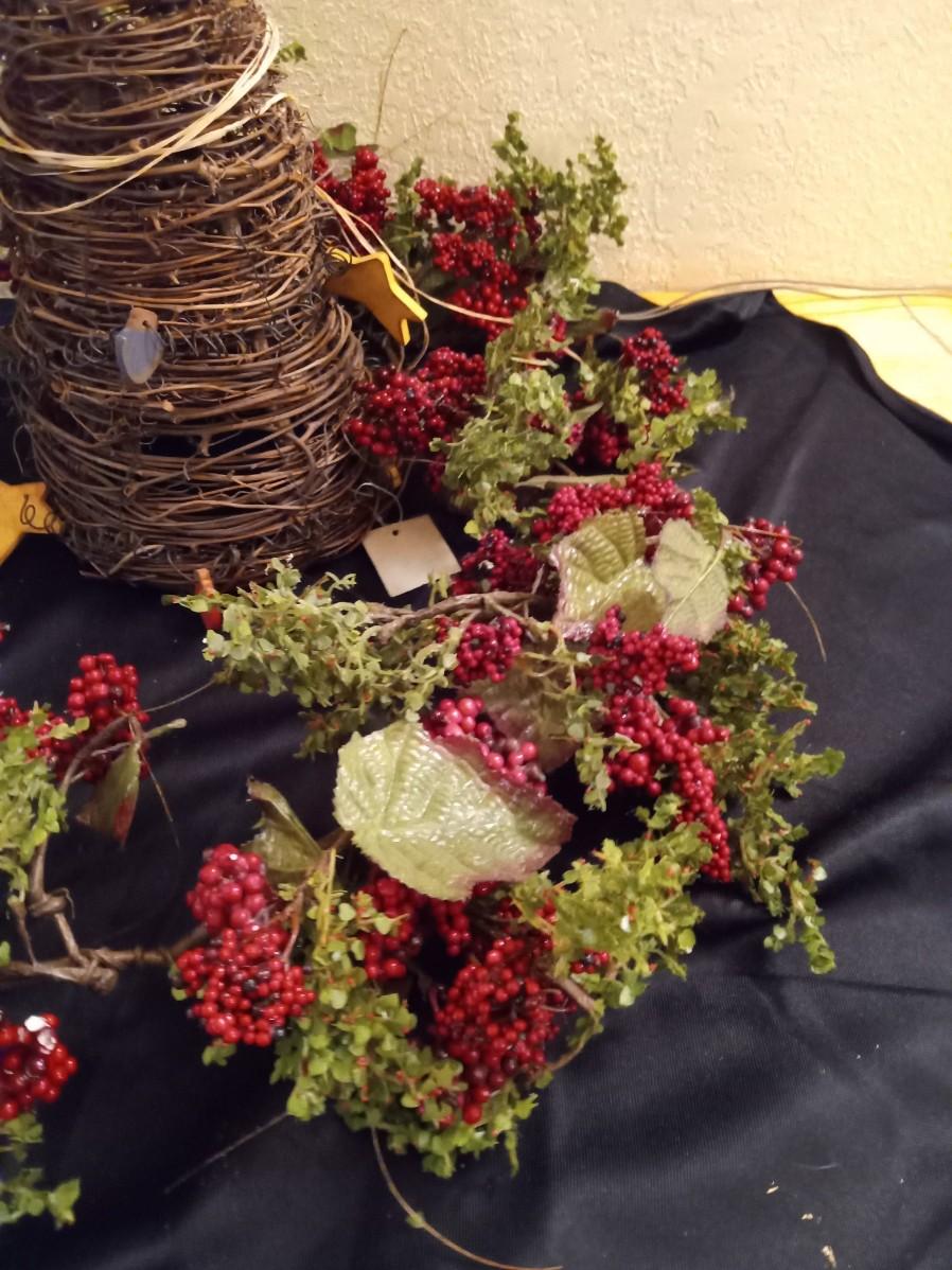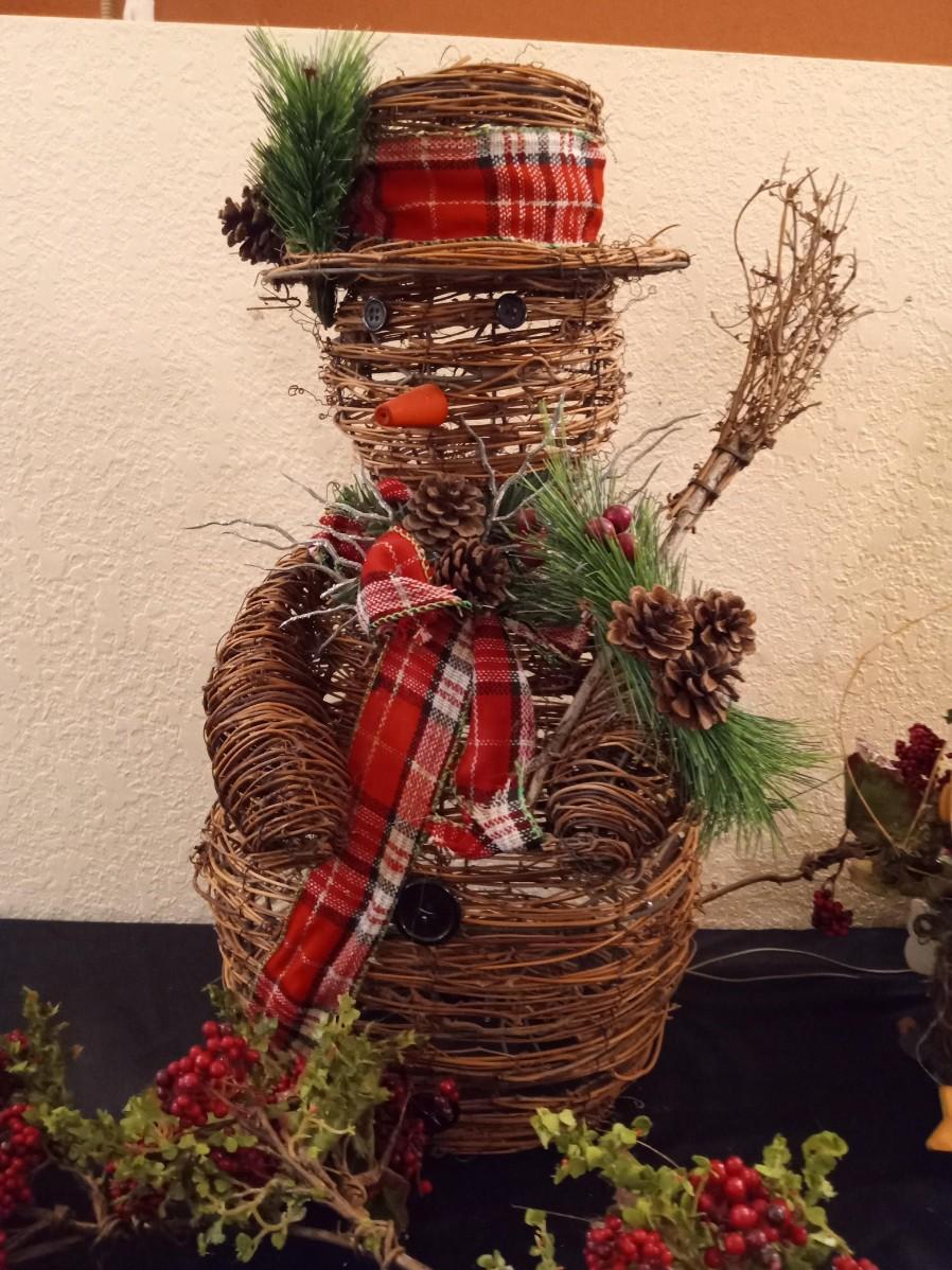 LOT 321  TWIG SNOWMAN AND TREE WITH FAUX BERRY GARLAND  (HD)