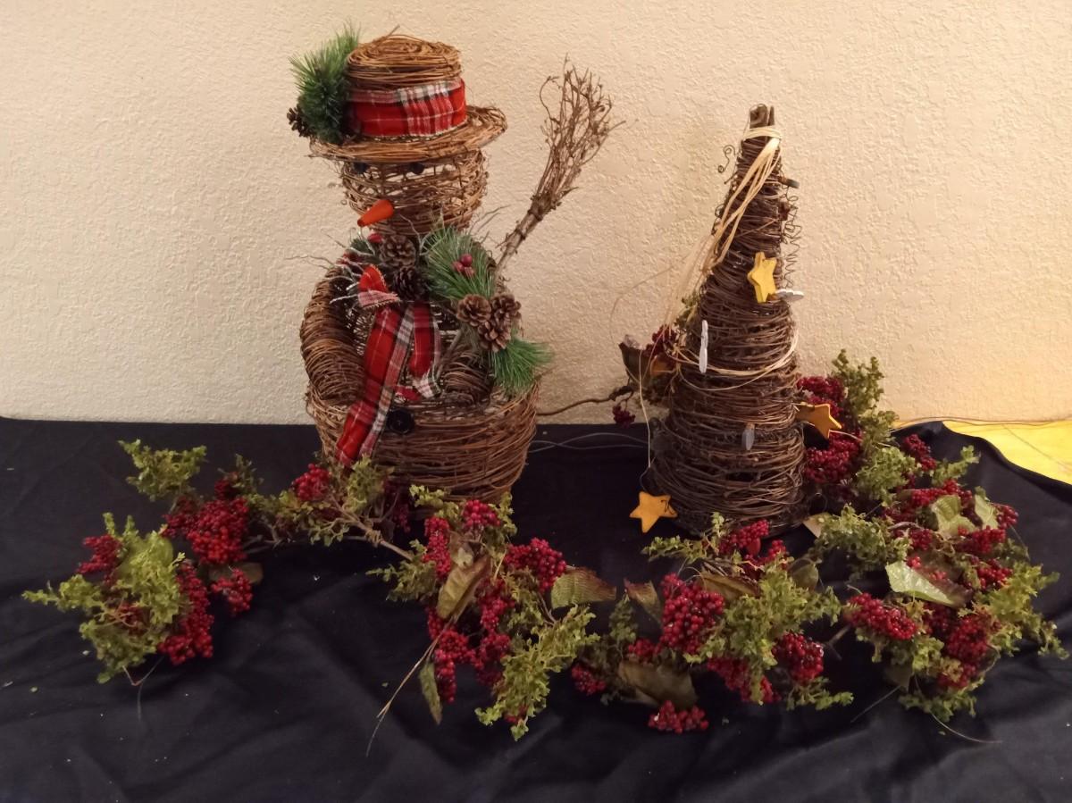 LOT 321 TWIG SNOWMAN AND TREE WITH FAUX BERRY GARLAND (HD)