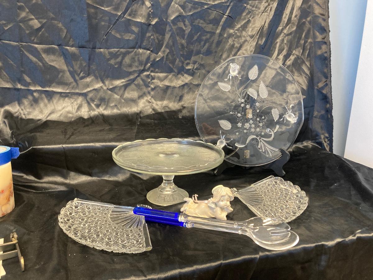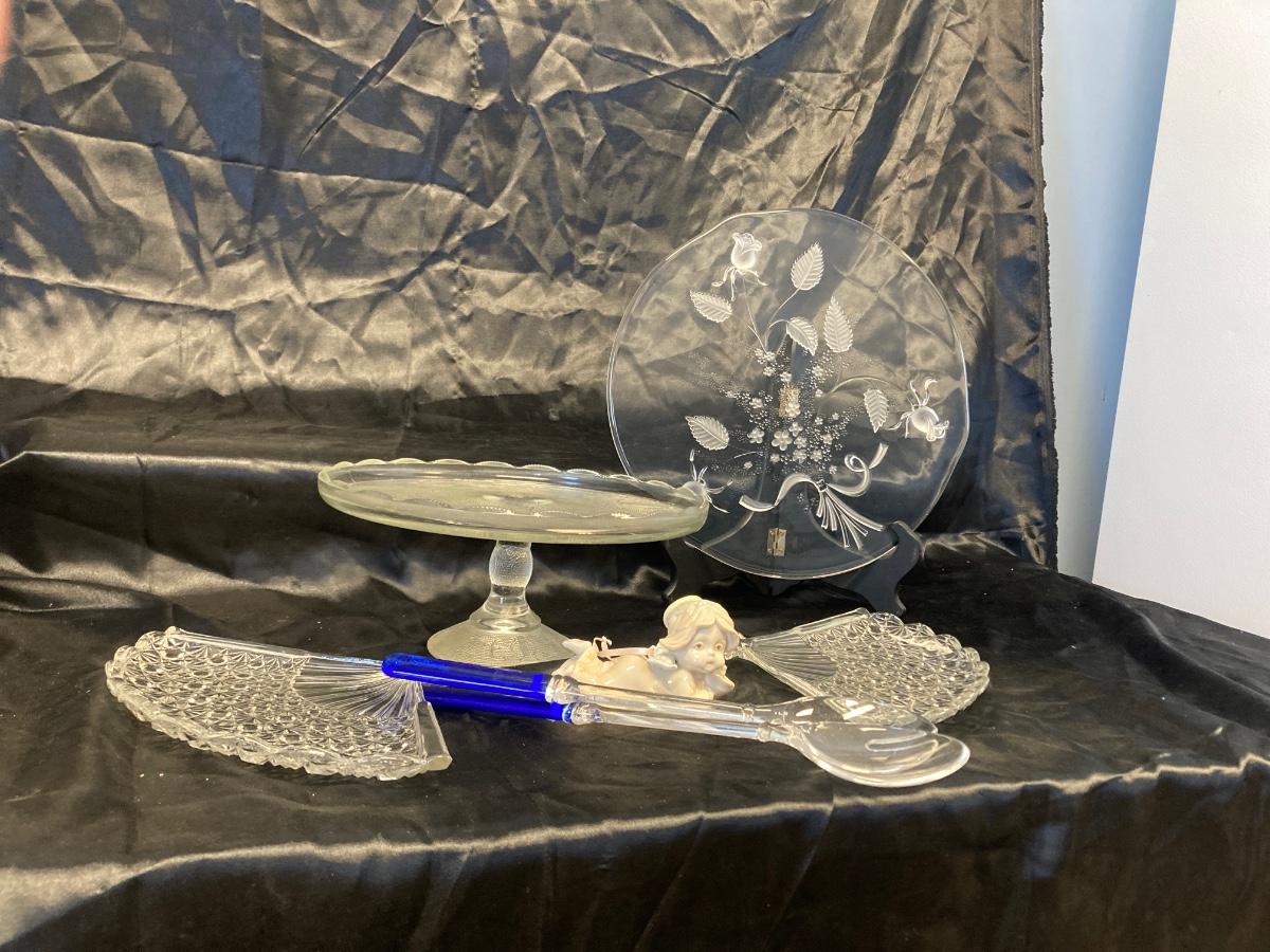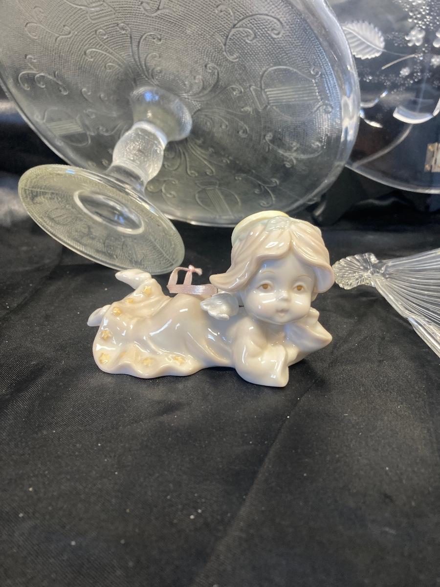 .LITTLE LAYING CHERUB ANGEL AND PLASTIC SERVING SPOONS