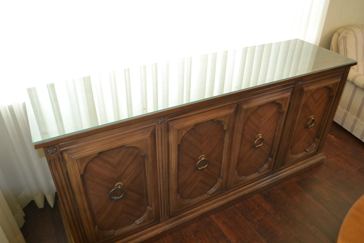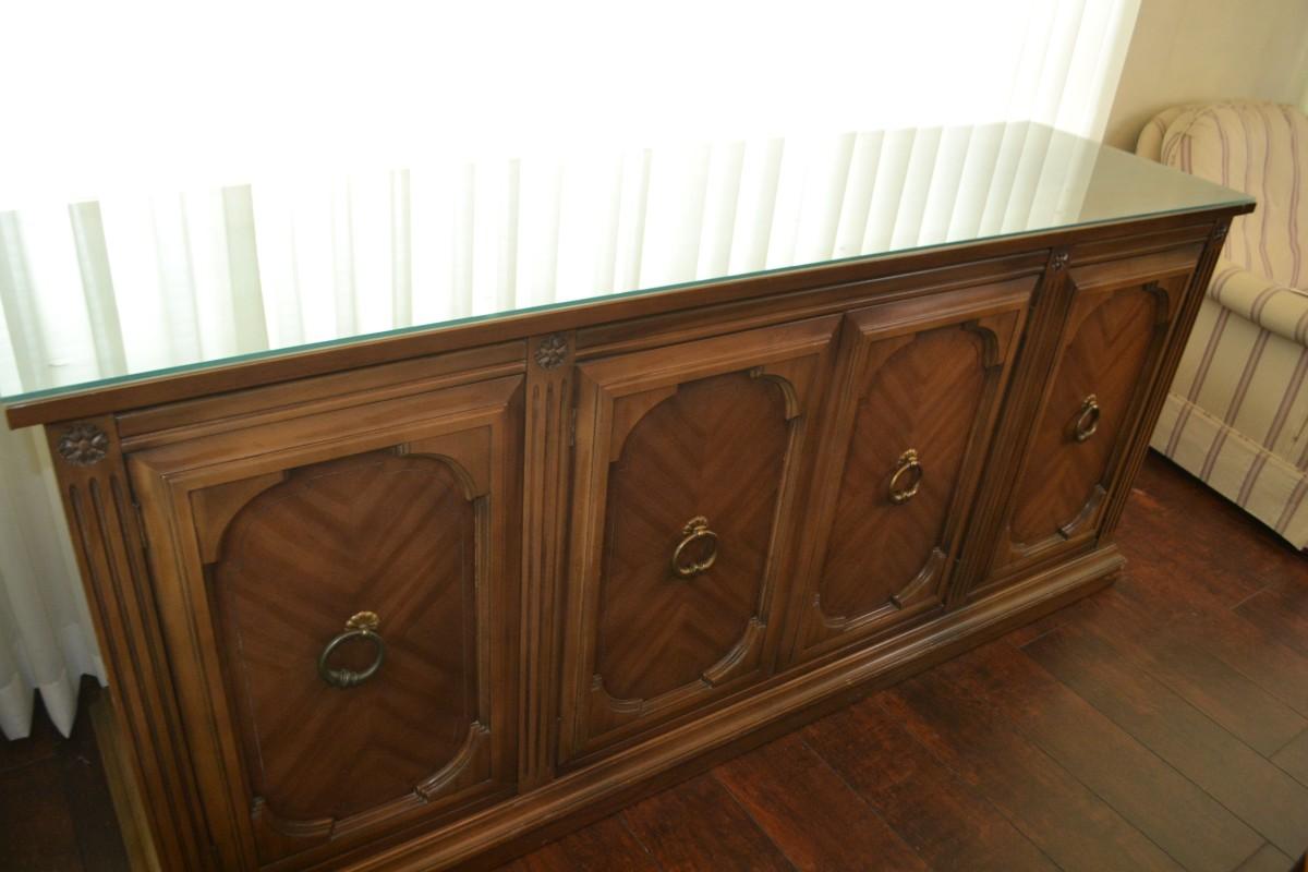 LOT 321 VINTAGE SIDEBOARD WITH GLASSTOP