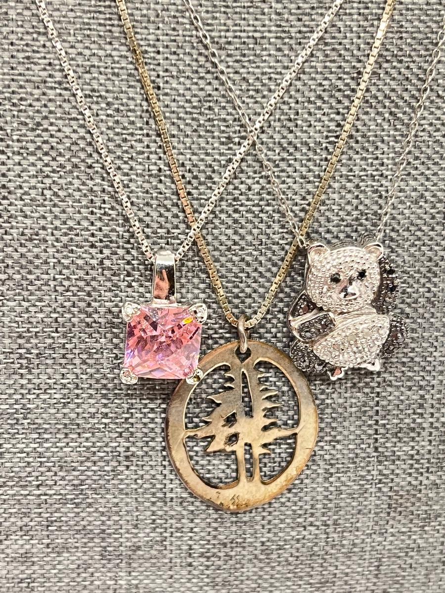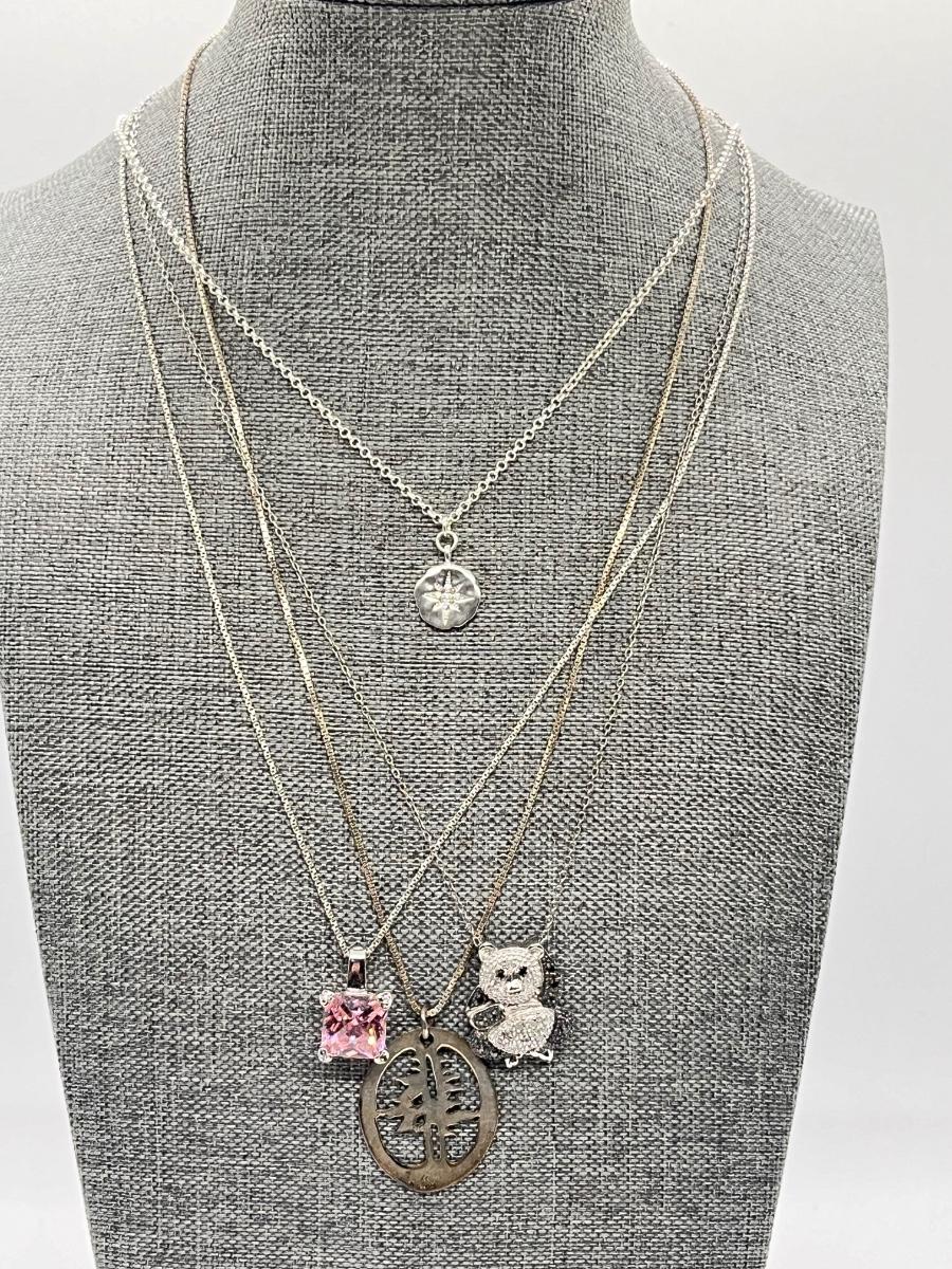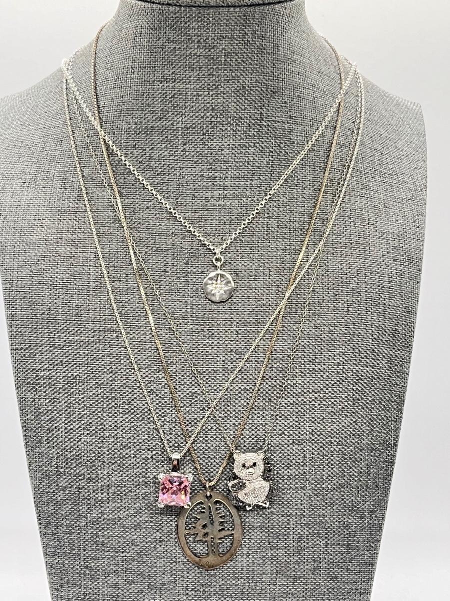 Lot 321J: Silvertoned Pendant Signed "JS" on Sterling Chain and 3 Sterling SIlver Chain/Pendant Combos
