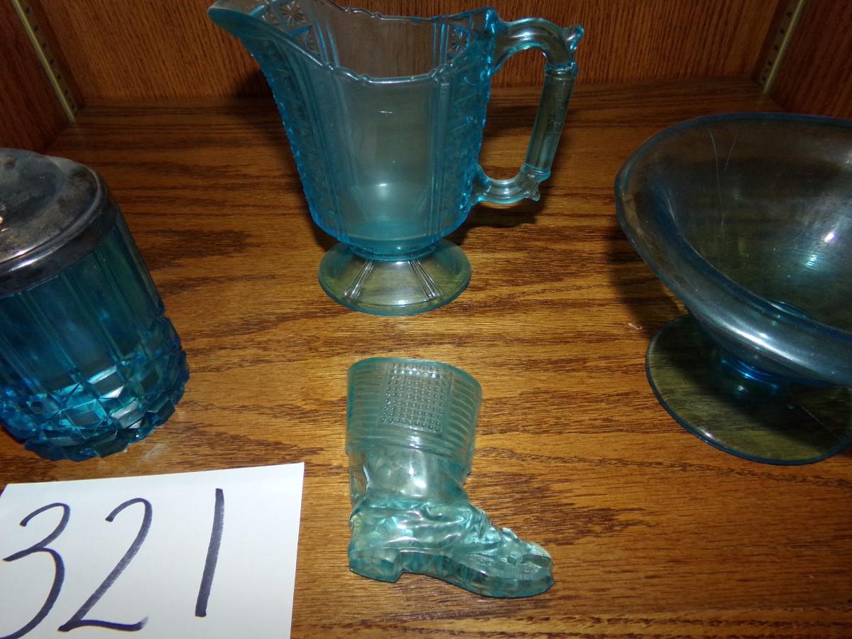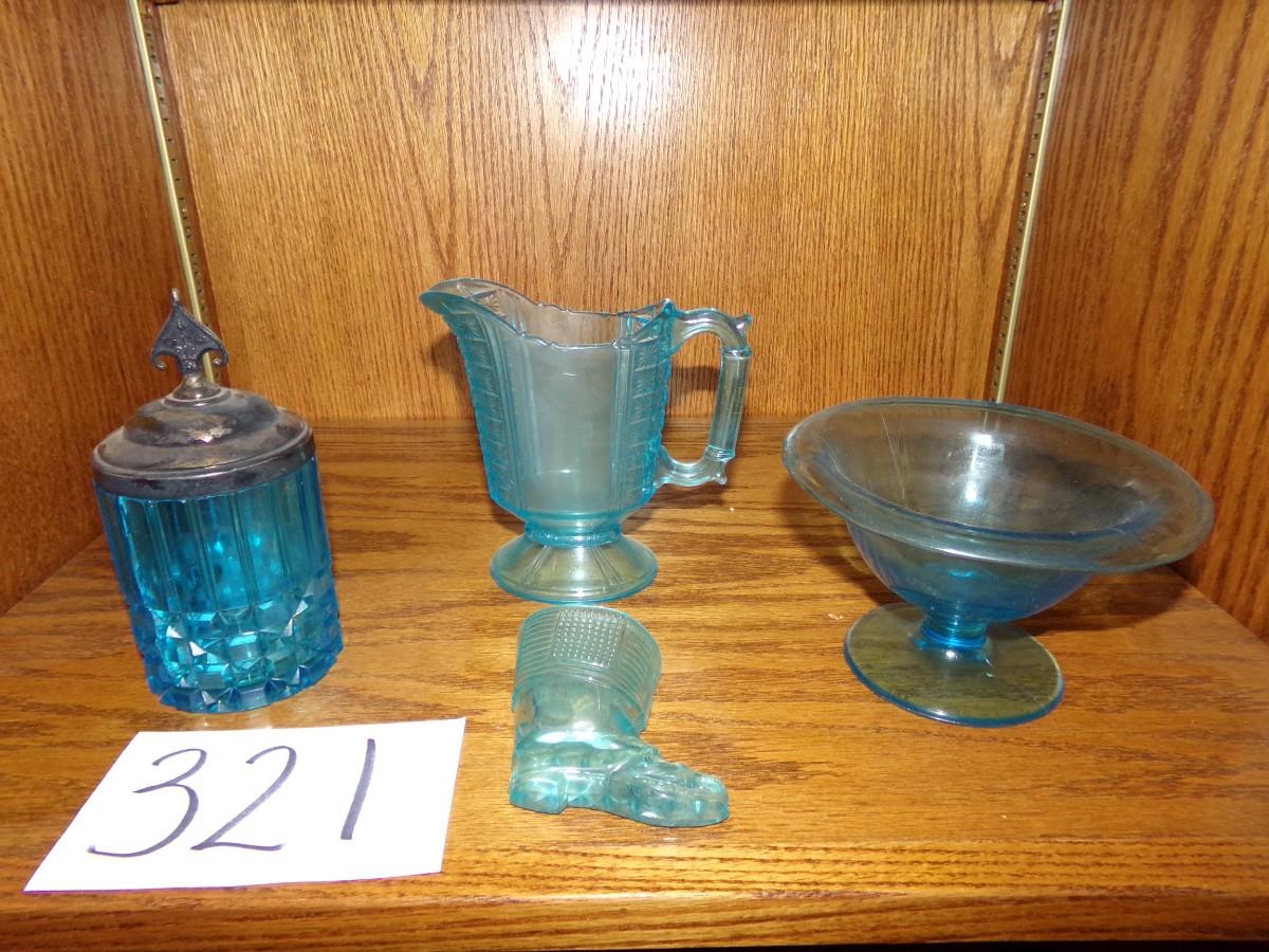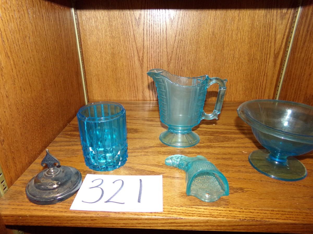 LOT 321 VINTAGE BLUE GLASS DISHES
