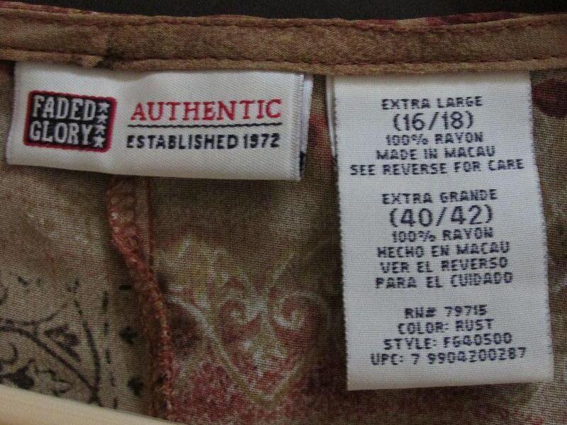 Brown patterned Faded Glory long sleeve top. Size XL (16/18). No significant wear noticed.