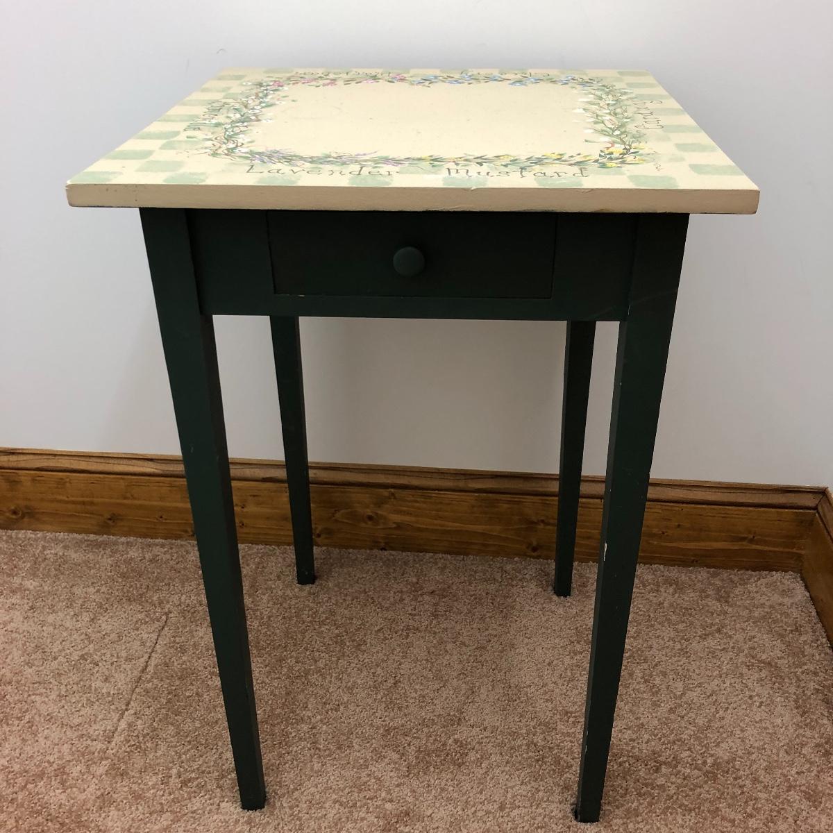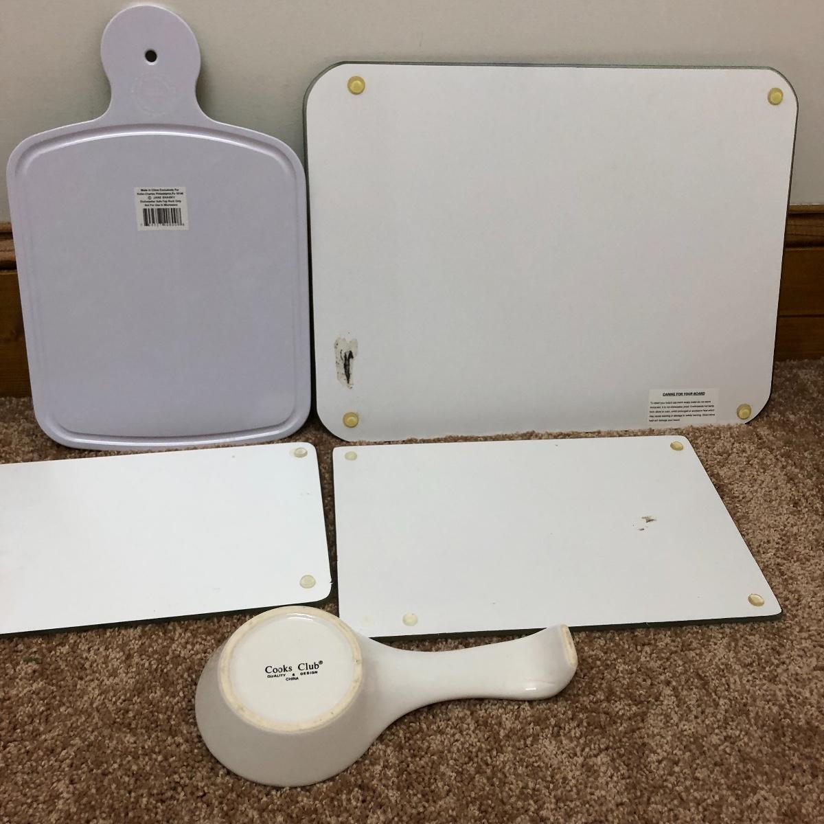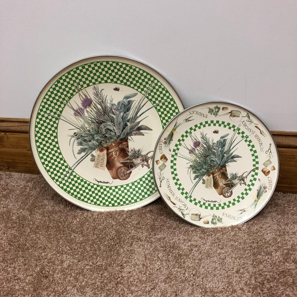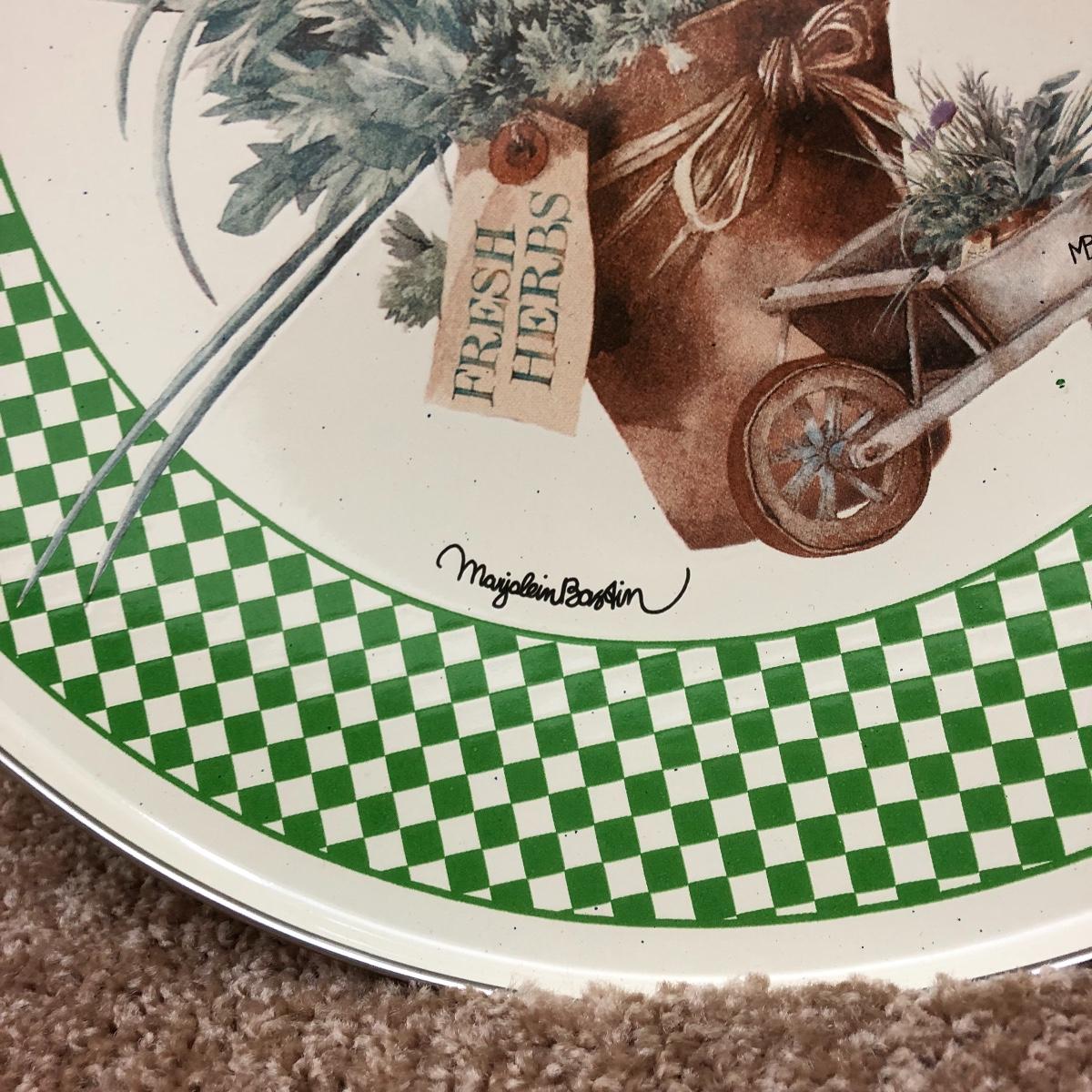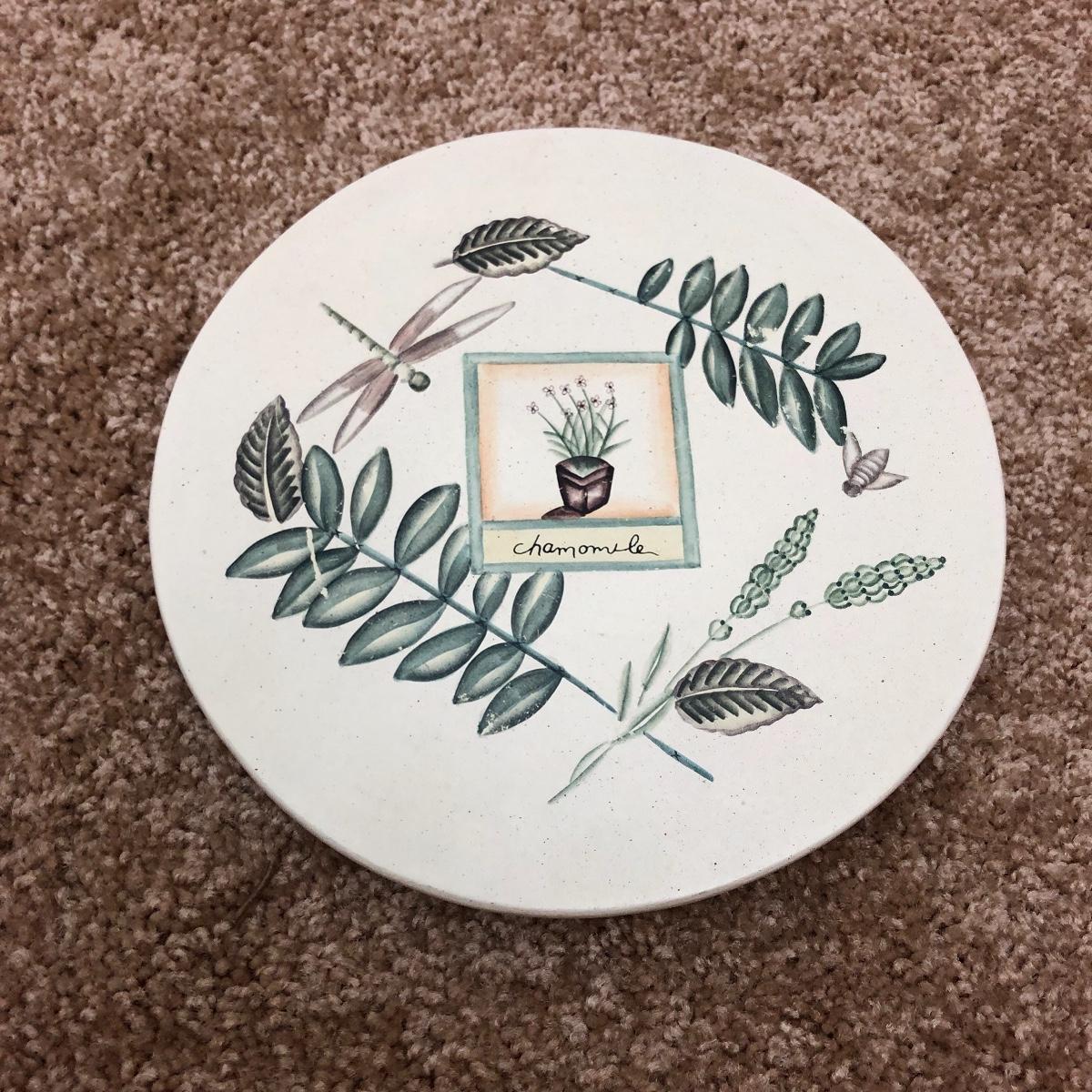 A great find for the chef or gardener. This Lot includes a table, four cutting boards, three pillows, spoon rest, two Marjolein Bastin metal serving plates, three Treasure Craft Canisters, Yankee Candle holder, frame and more. The Table measures 20” x 20” x 30”.