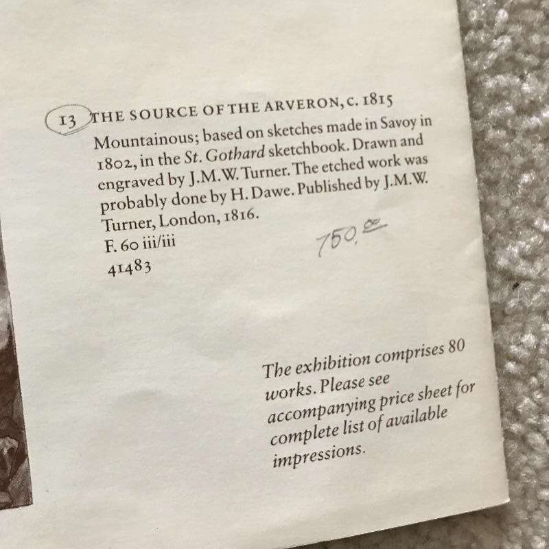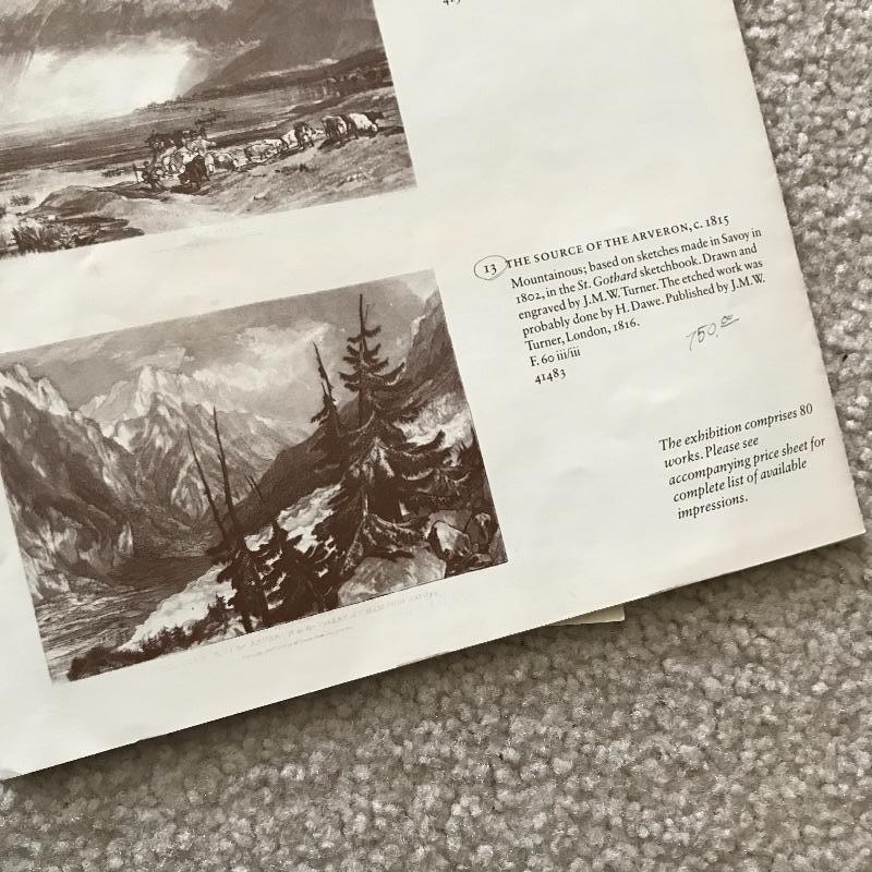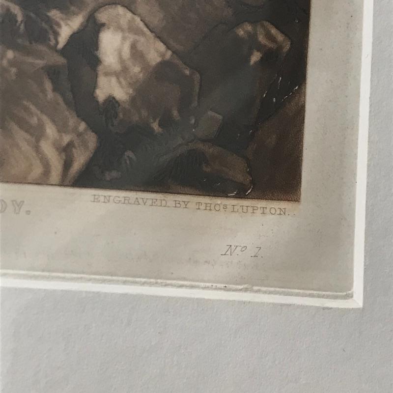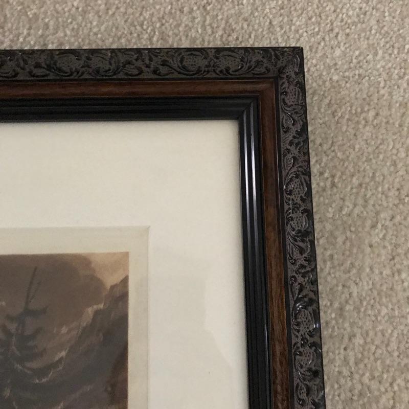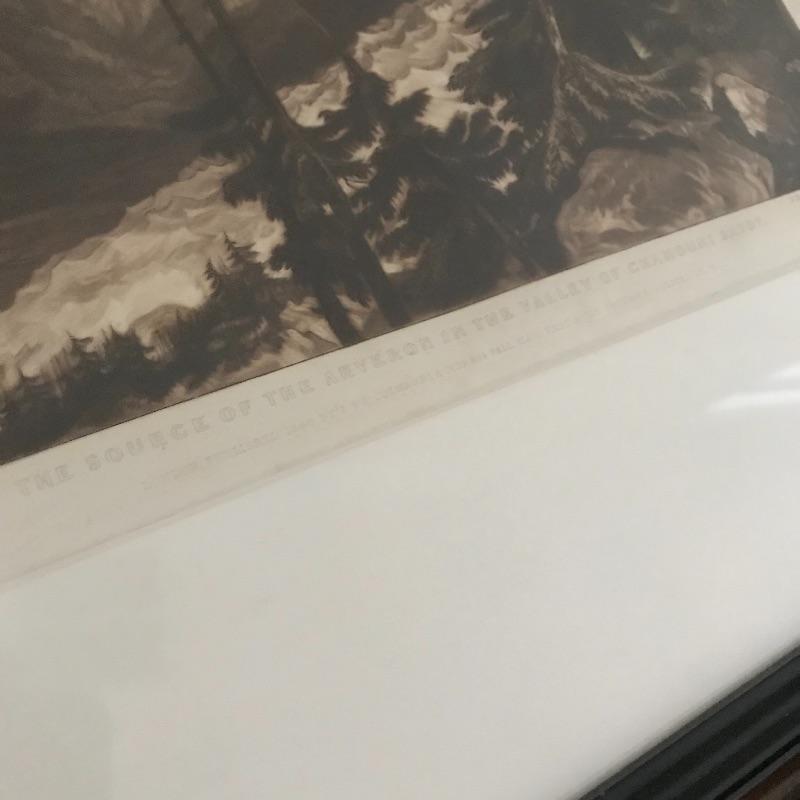 This gorgeous artwork is titled “The Source of the Arveron In the Valley of Chamoini Savoy” and was drawn by J.M.W. Turner and engraved by Thos Lupton. Turner etched the copper plates, then gave him to a professional engraver to add the mezzo tint engraving. This piece appears to have been purchased for $750 in 1987. Approx. 18” x 16.5”. See images. Comes with documentation.