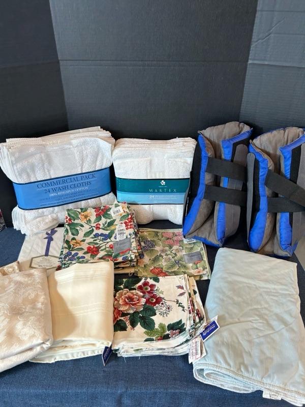 Wash cloths, table cloths, napkins, McKesson heel protector.