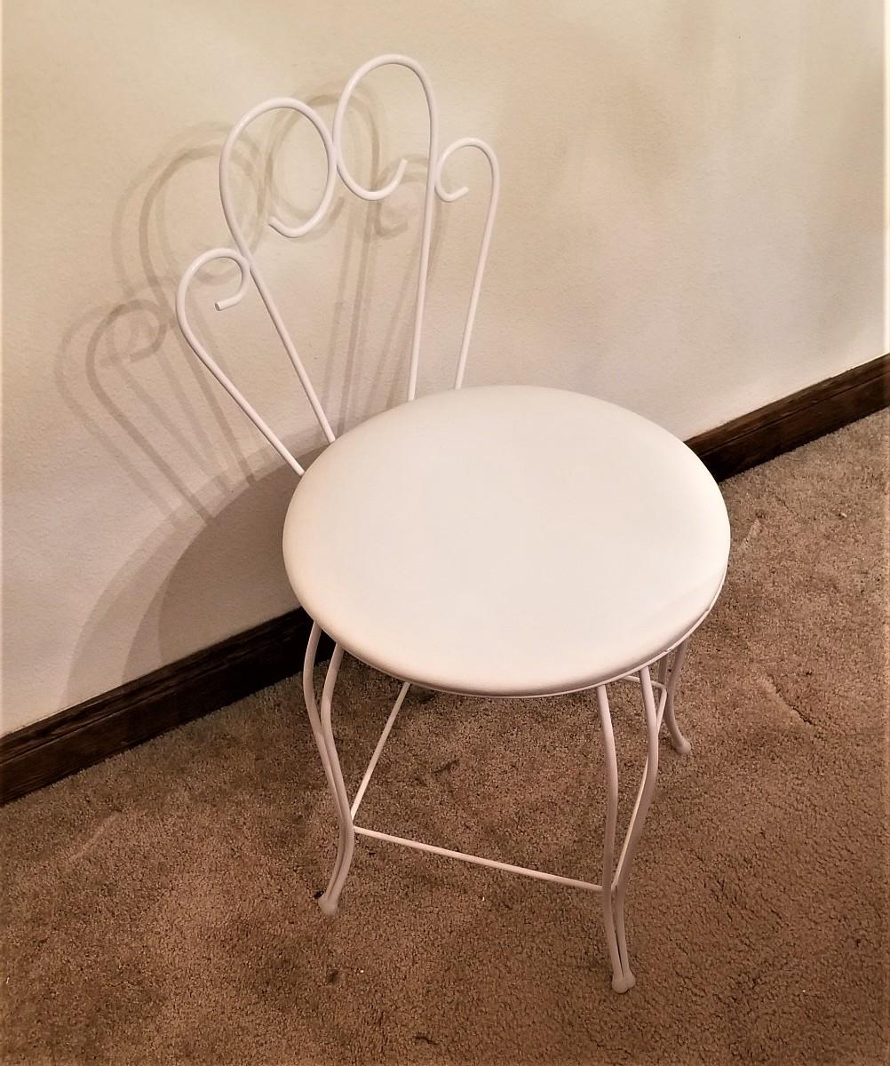 Cute vintage vanity chair with padded seat. Like new. 26.5" tall, 14" across. Sturdy.
