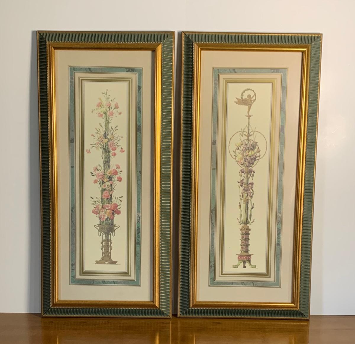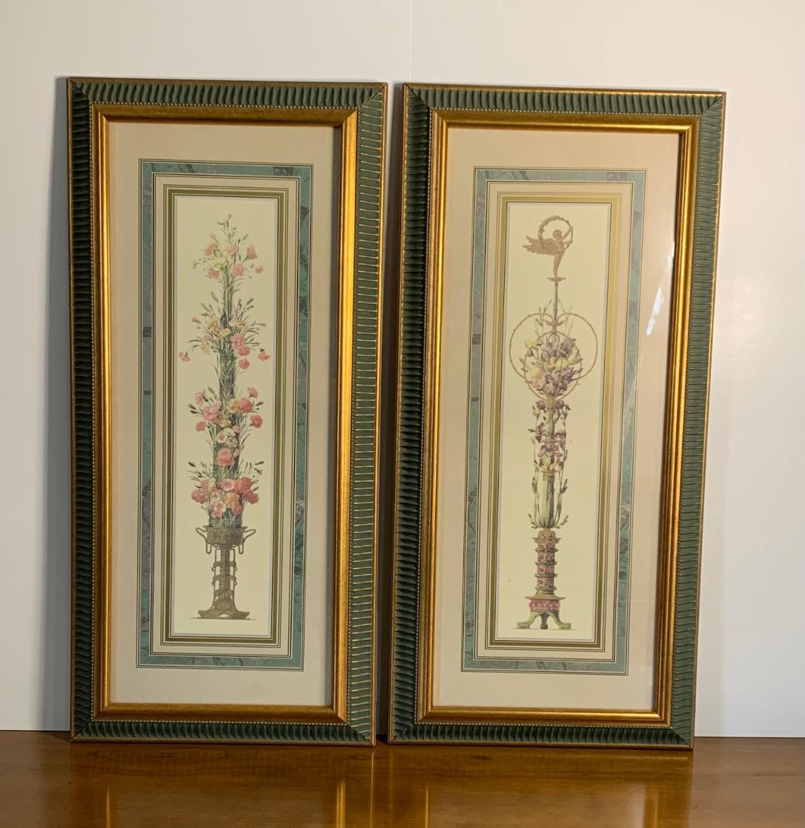 Beautiful pair of floral prints. Approximately 11 x 23.