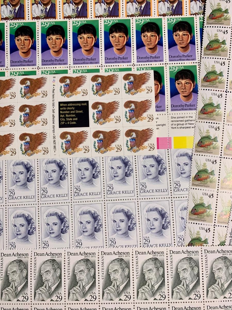 .25-.45 cents. The retail pertains to the year these stamps were purchased, but because many of these sheets and/or loose stamps are no longer for sale and hard to find, they sell well individually online and for more than retail. Please see all pictures as they are the best representation of the items. The pictures show condition, measurements if taken, and what is included in the lot. Due to the large amount that we photograph and the time frame, we are not always able to take measurements. All items unless noted, are pre-owned and have been used. If you purchased furniture, you must bring help. We do not allow one person to carry large furniture out on their own. Bring help, tools and a truck for the safety of our client’s homes, and your personal safety. Company policy. Thank you.