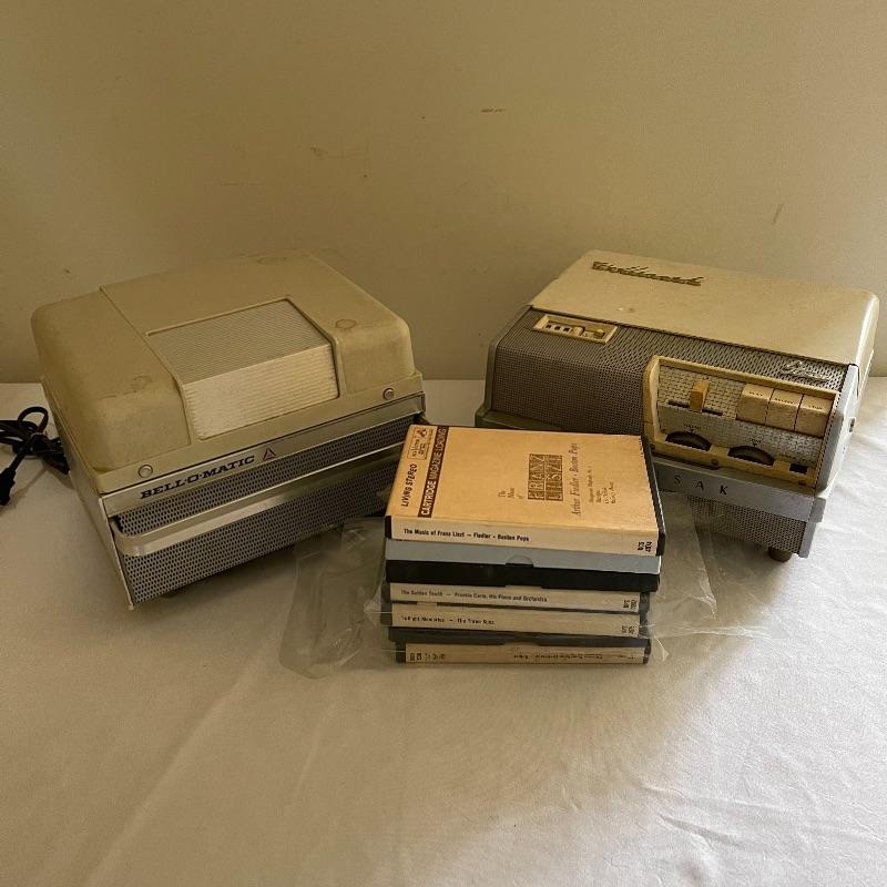 Bellamatic sound tape cartridge player and Wollensak stereo tape magnetic recorder and more. The Bellomatic model number is 603 and was developed by RCA in 1957. The Wollensak recorder is model T-1515. Seven living stereo tapes are included.
