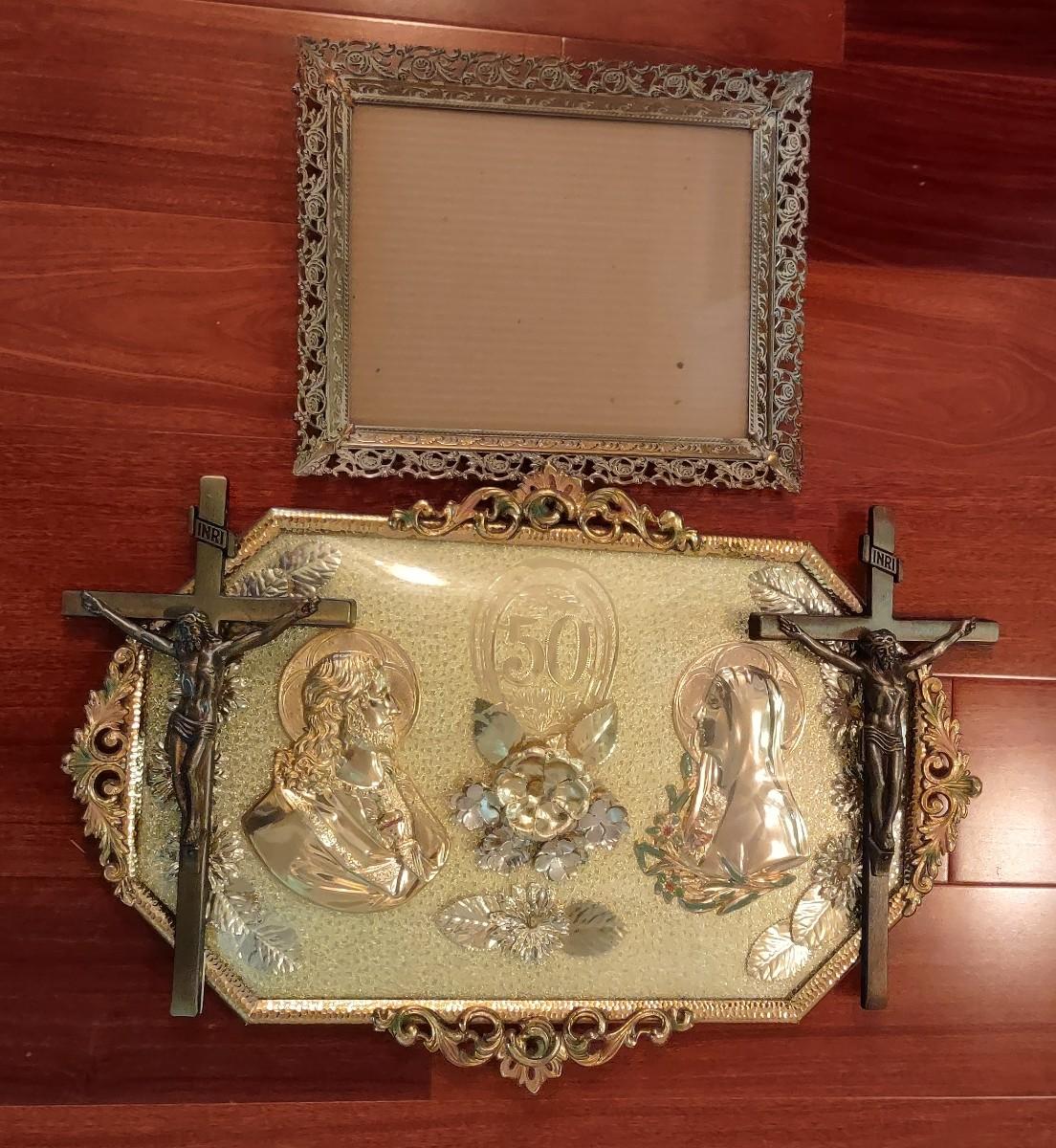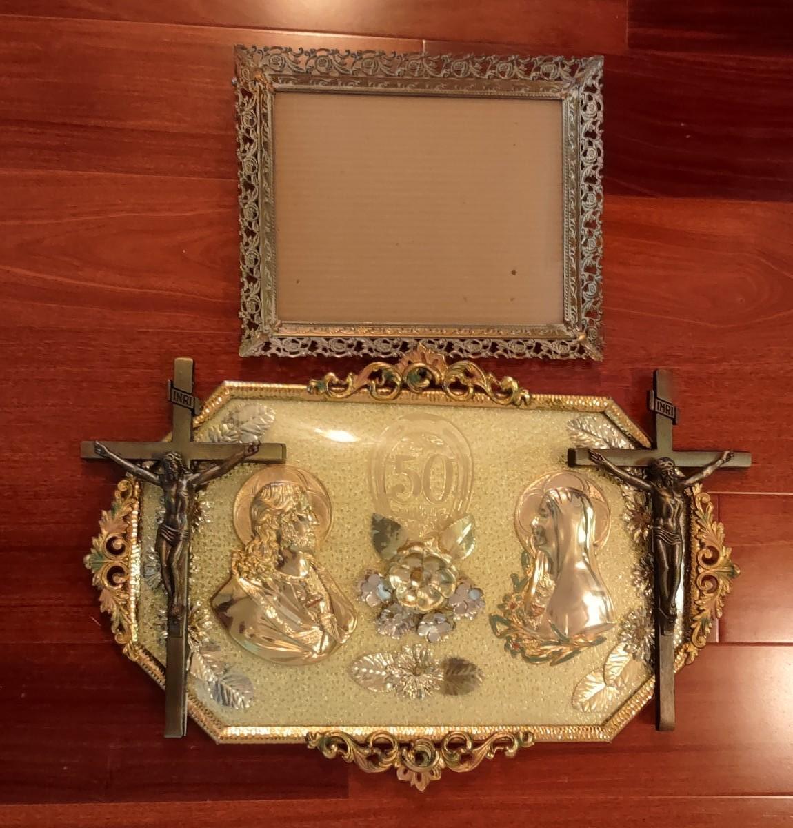Bubble Covex Glass Metal Ornate Frame Jesus & Mother Mary Antique Wall Art Hanging 20×14 & Picture Frame 9×11 & More. Please see all pictures as they are the best representation of the items. The pictures show condition, measurements if taken, and what is included in the lot. Due to the large amount that we photograph and the time frame, we are not always able to take measurements. All items unless noted, are pre-owned and have been used. If you purchased furniture, you must bring help. We do not allow one person to carry large furniture out on their own. Bring help, tools and a truck for the safety of our client’s homes, and your personal safety. Company policy. Thank you.