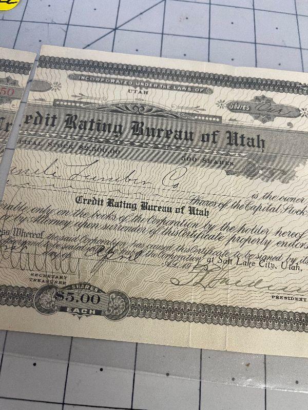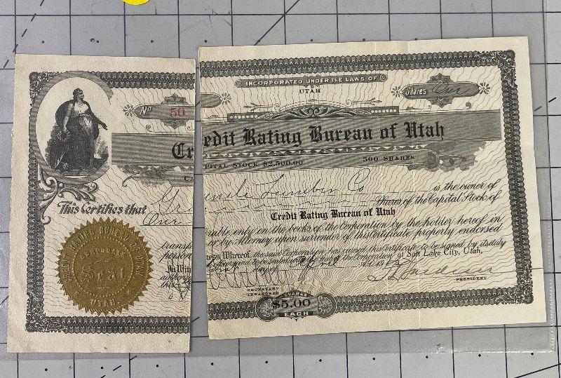 Lot #322 "Credit Rating Bureau of Utah" Stock Certificated