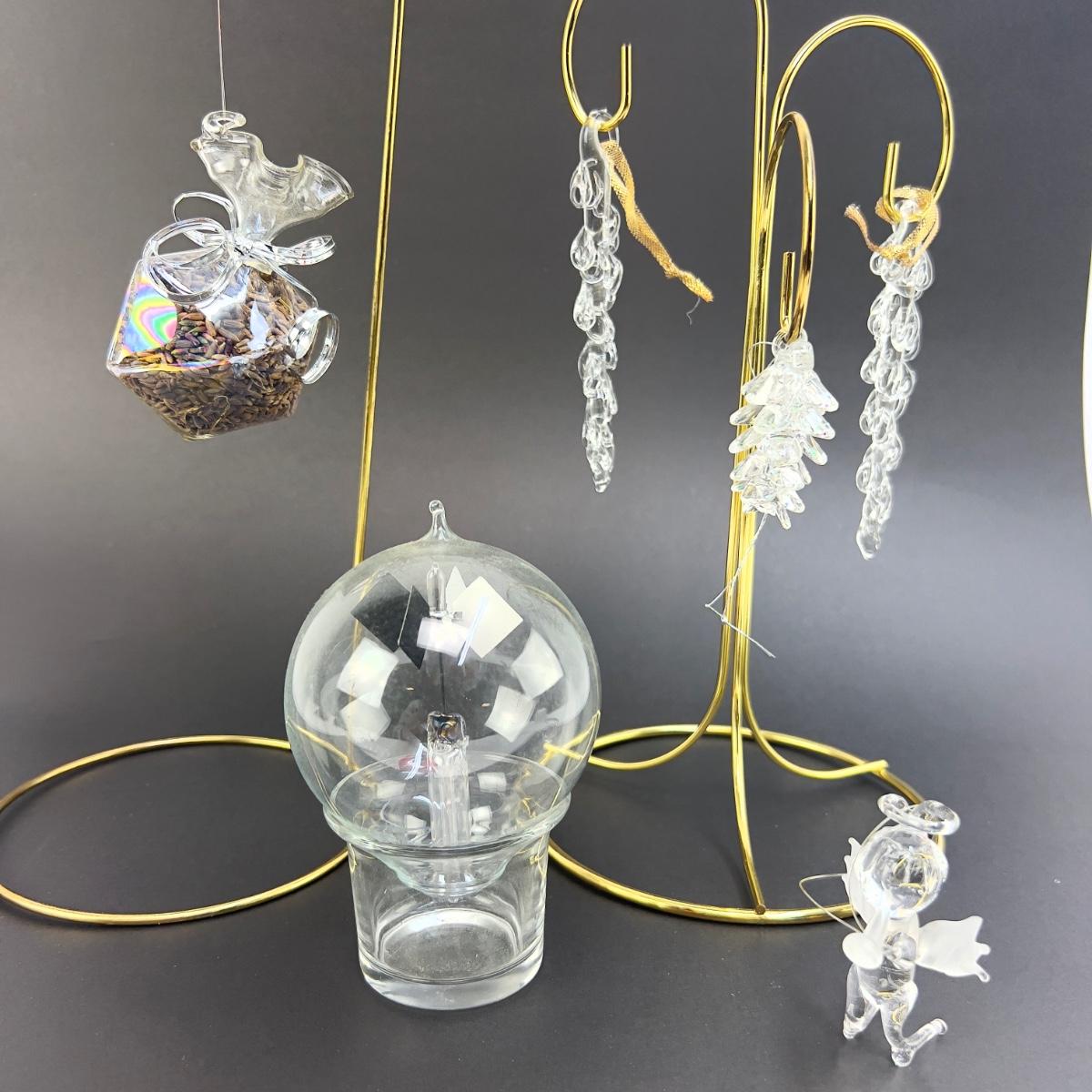 Lot of Clear Glass Ornament ( Angel, Icicles, Potpourri Bag, Pinecone )