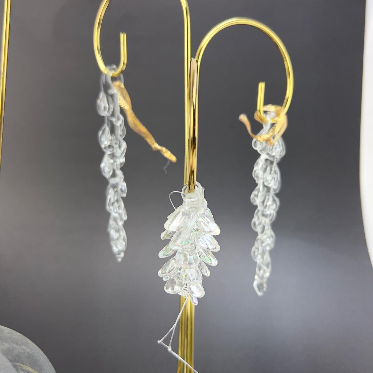 Lot 322 Lot of Clear Glass Ornament ( Angel, Icicles, Bag, Pinecone )