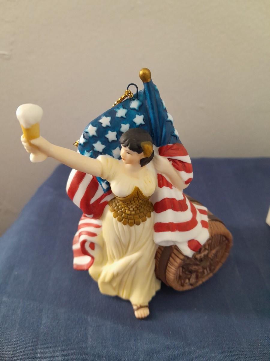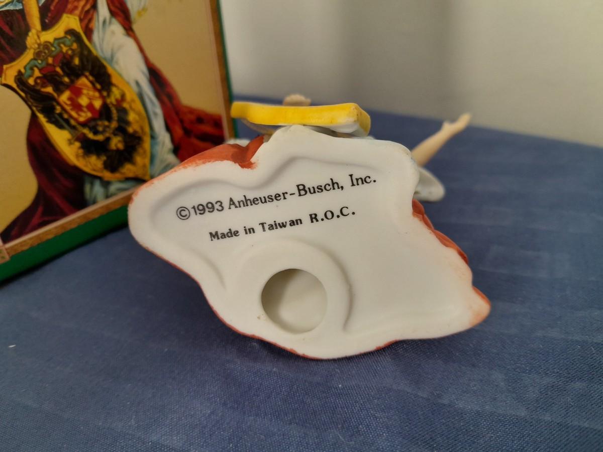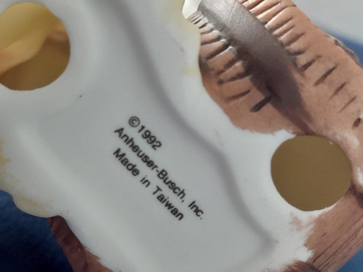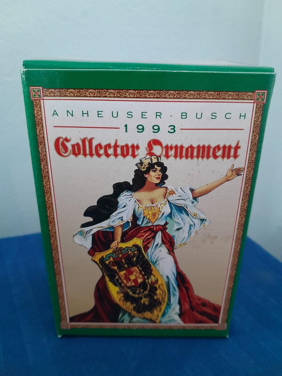 TWO COLLECTABLE ORNAMENTS, AND AN ANHEUSER BUSH BEER KEG BANK