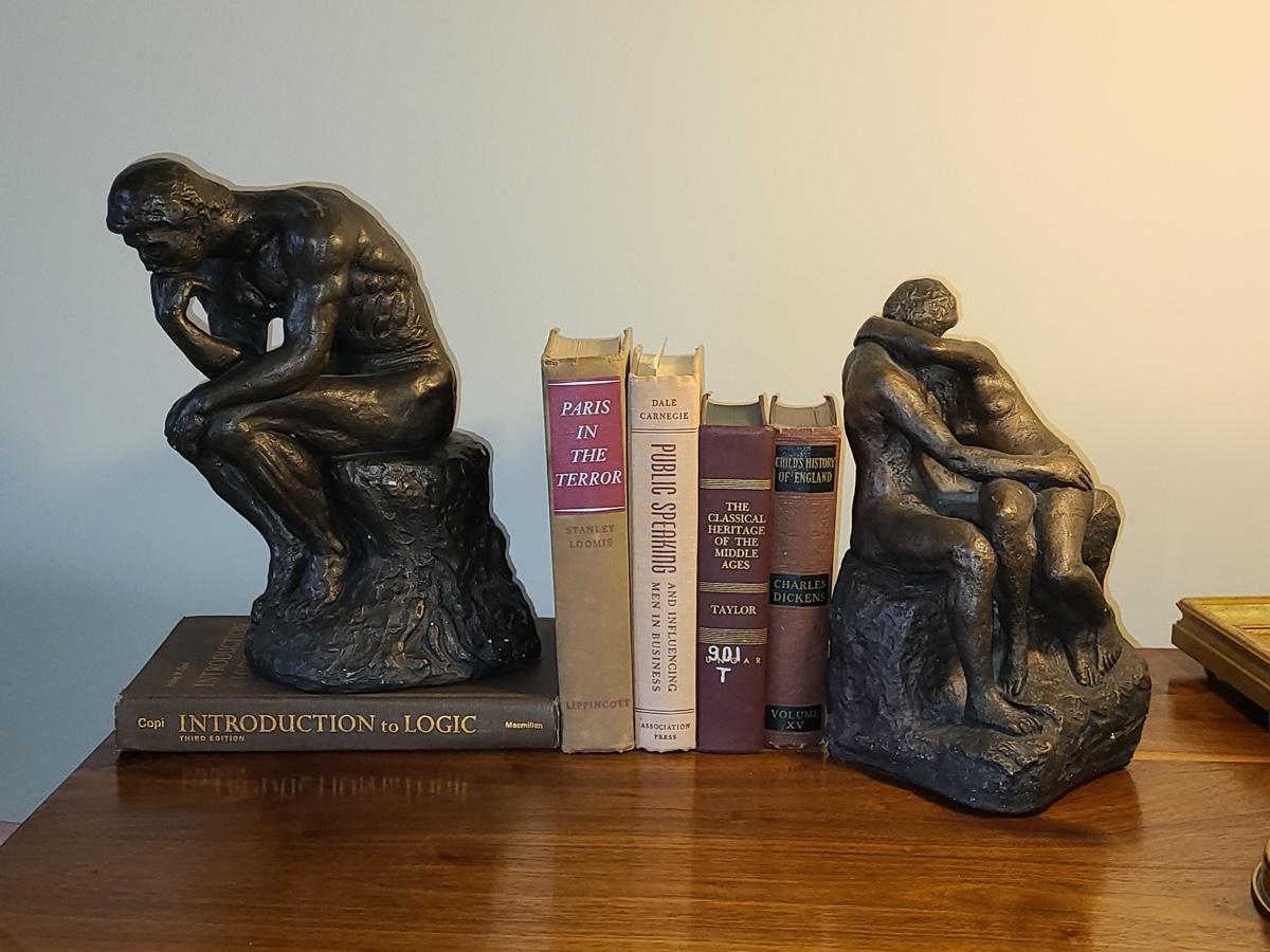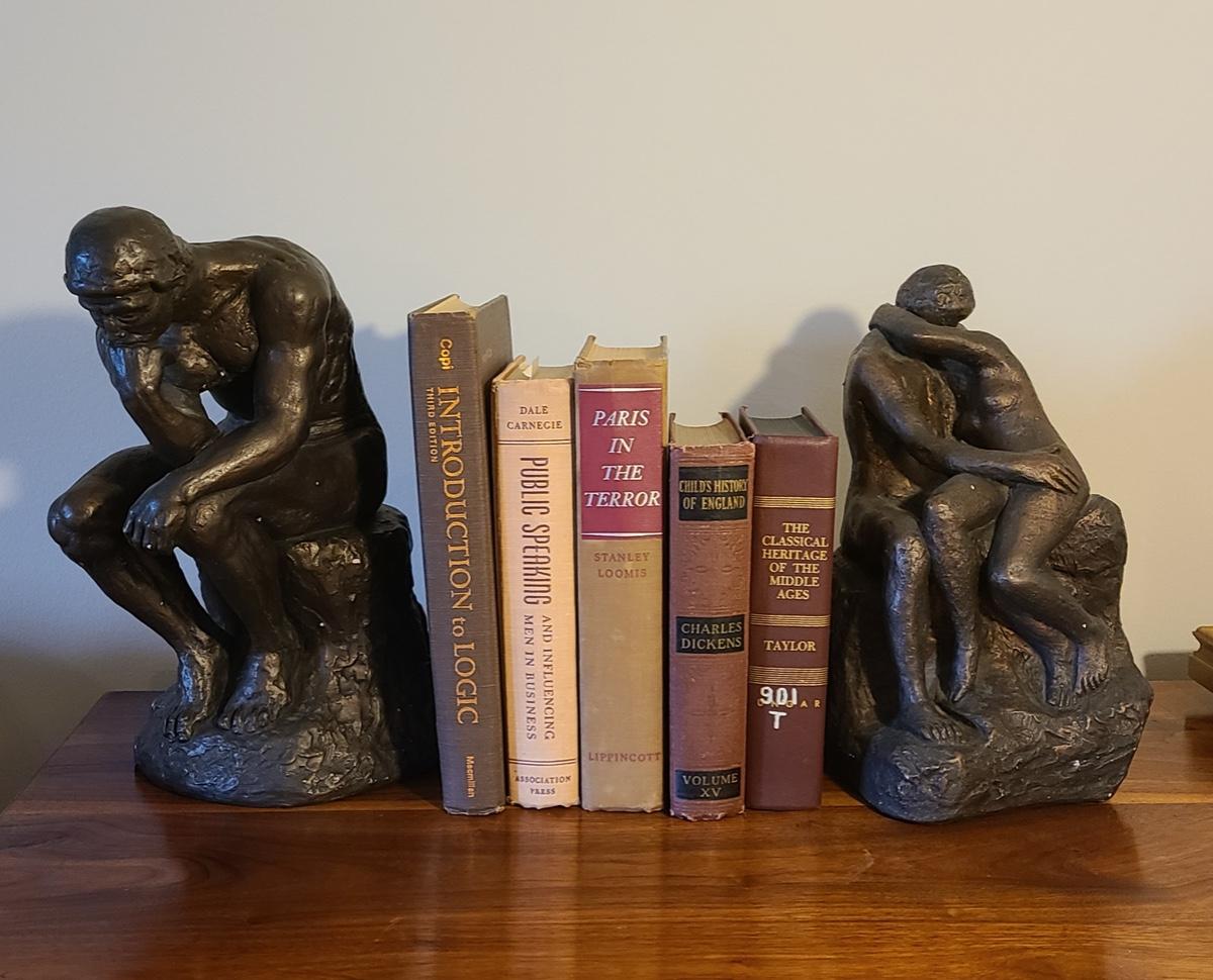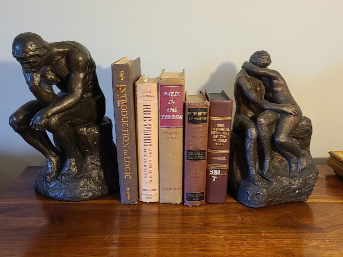Vintage lot of books and two Austin Prod. 1970's sculptures, feel like chalk-ware or clay. Please see all pictures as they are the best representation of the items in the lot, the condition of the lot, and will show measurements if taken. If purchasing furniture you must be able to move yourself with your own help, and truck. This is located on the first floor.