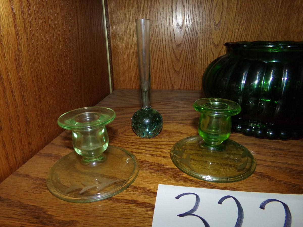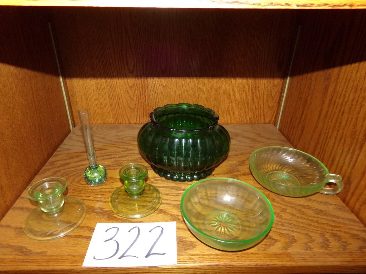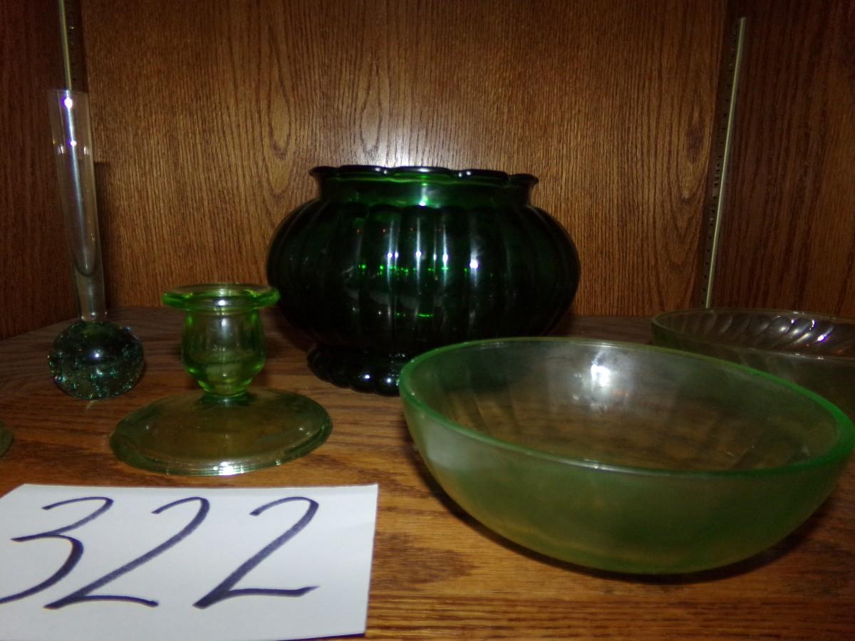 LOT 322 VINTAGE GREEN DEPRESSION GLASS