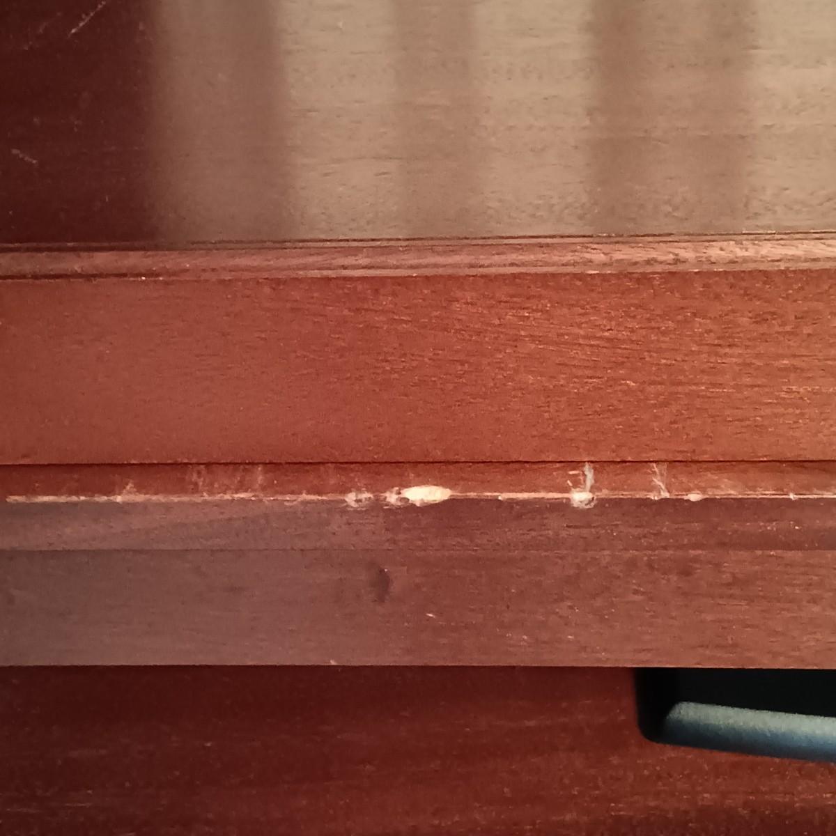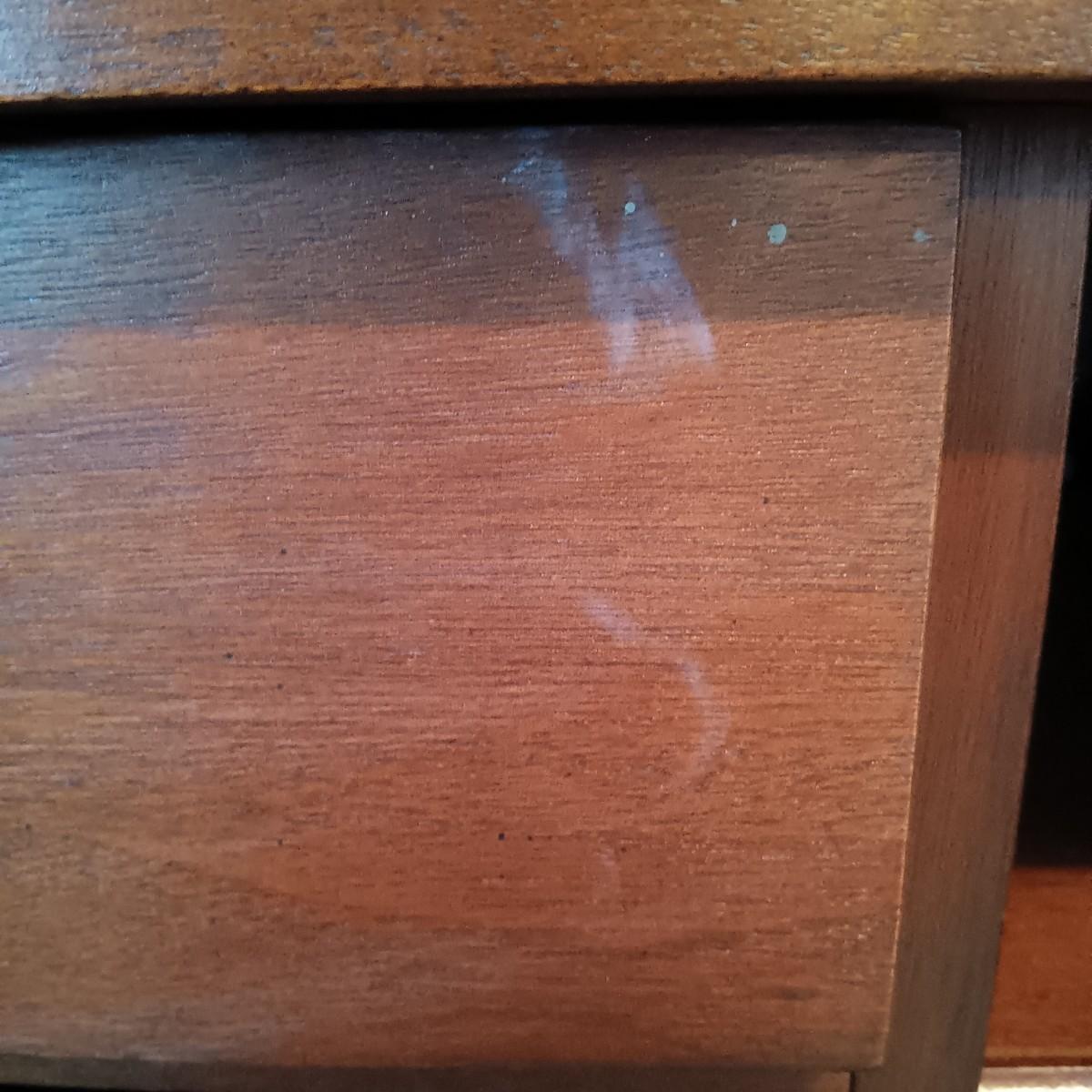 This piece has some small scuffs and scratches. The backing has a hole in it.