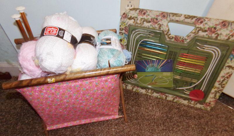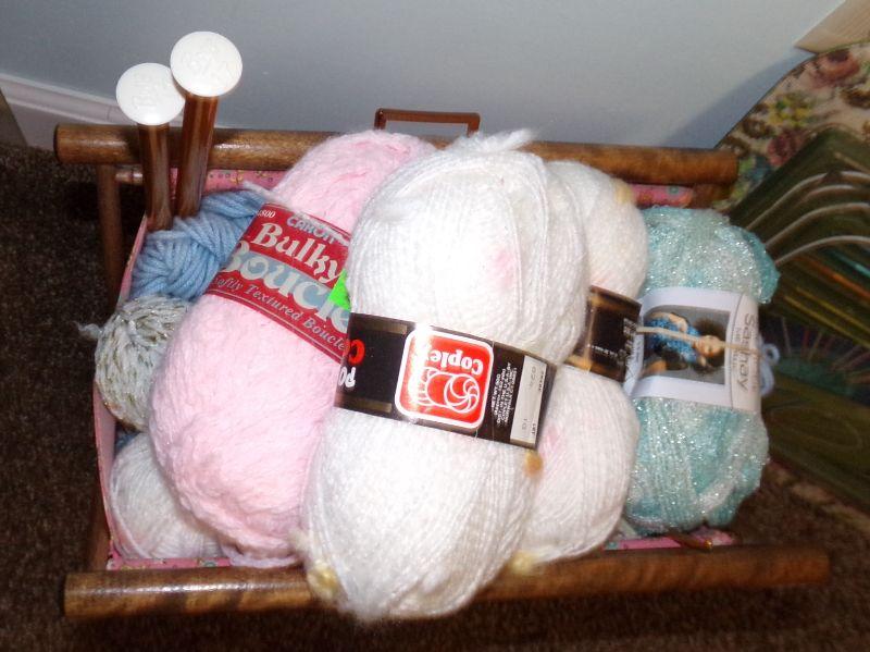 YARN IN BAG AND NEW PACKAGE OF VARIOUS KNITTING AND CROCHET NEEDLES