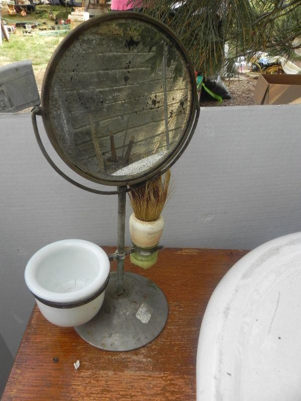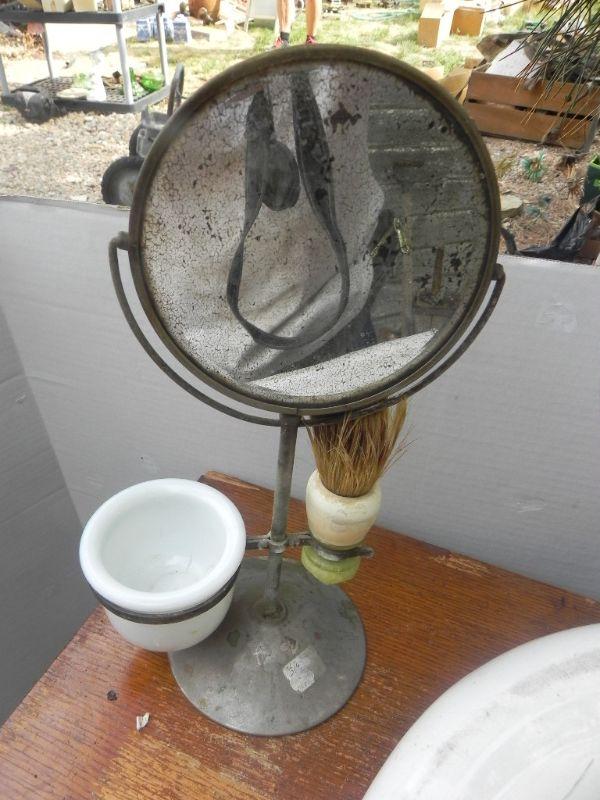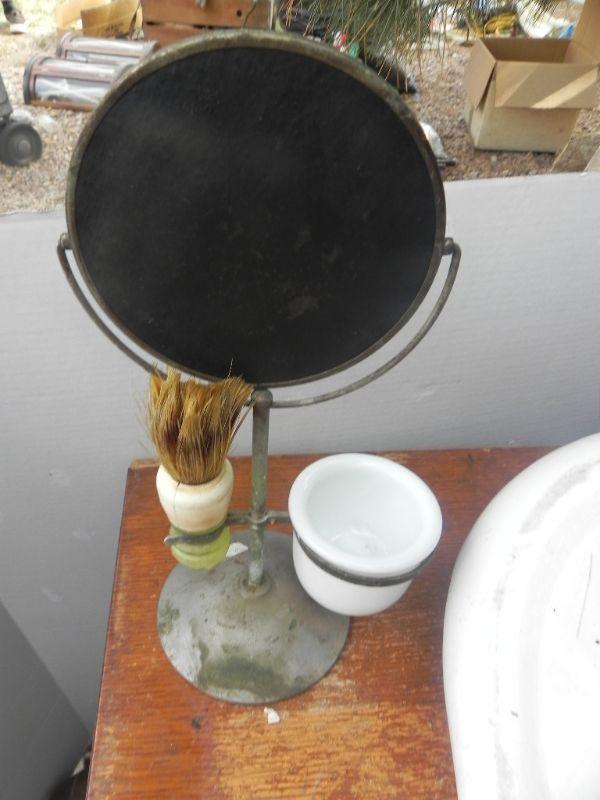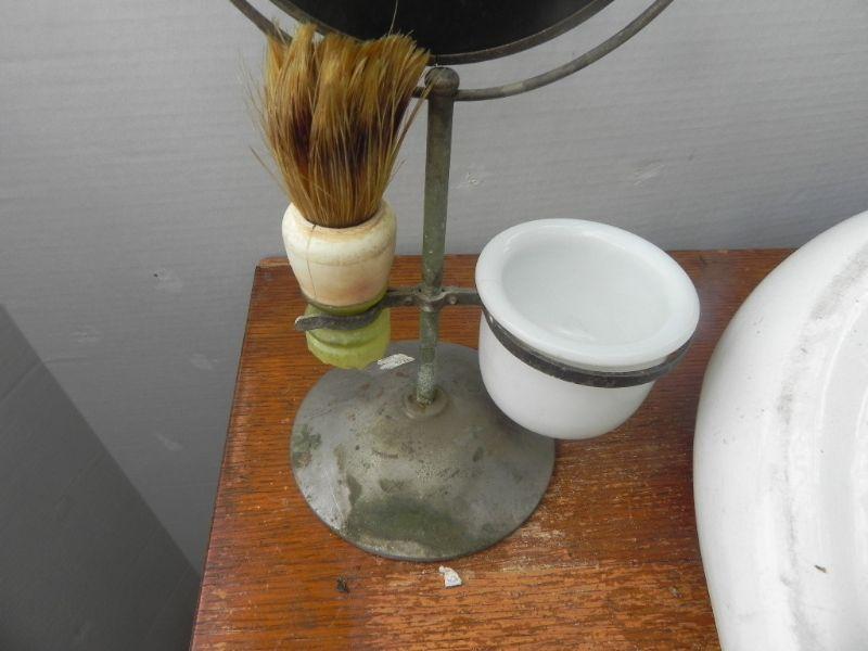 SHAVING STATION WITH MIRROR, BRUSH AND SHAVING CREAM BOWL