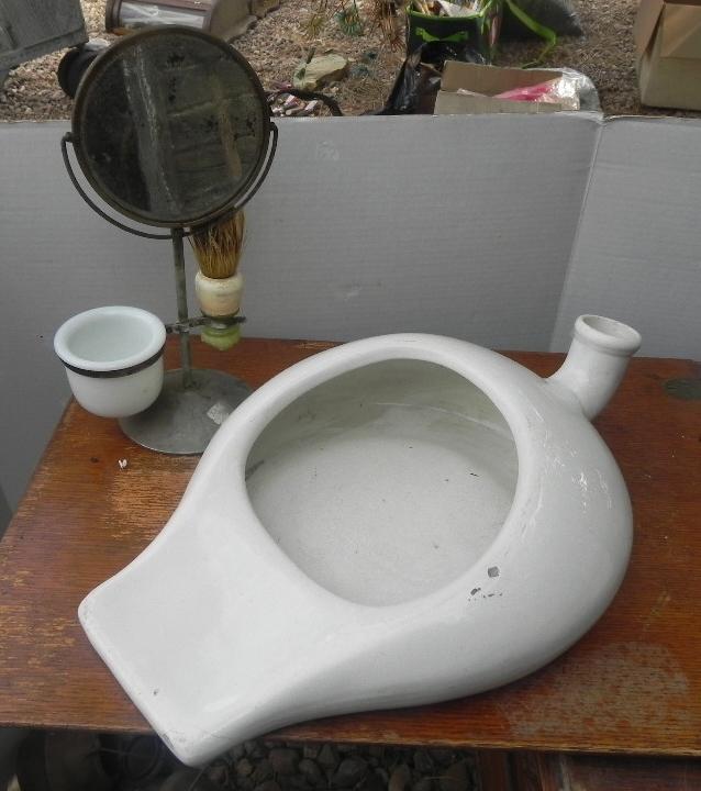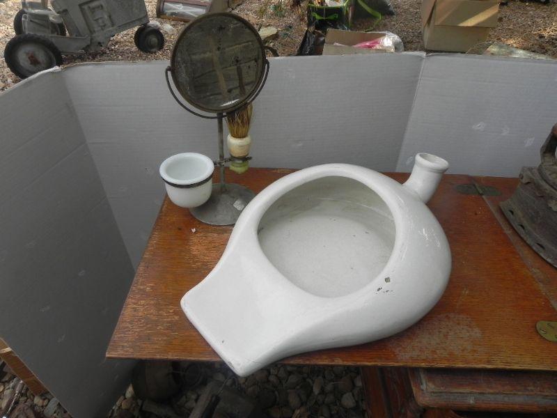 LOT 323 ANTIQUE SHAVING STATION & BED PAN