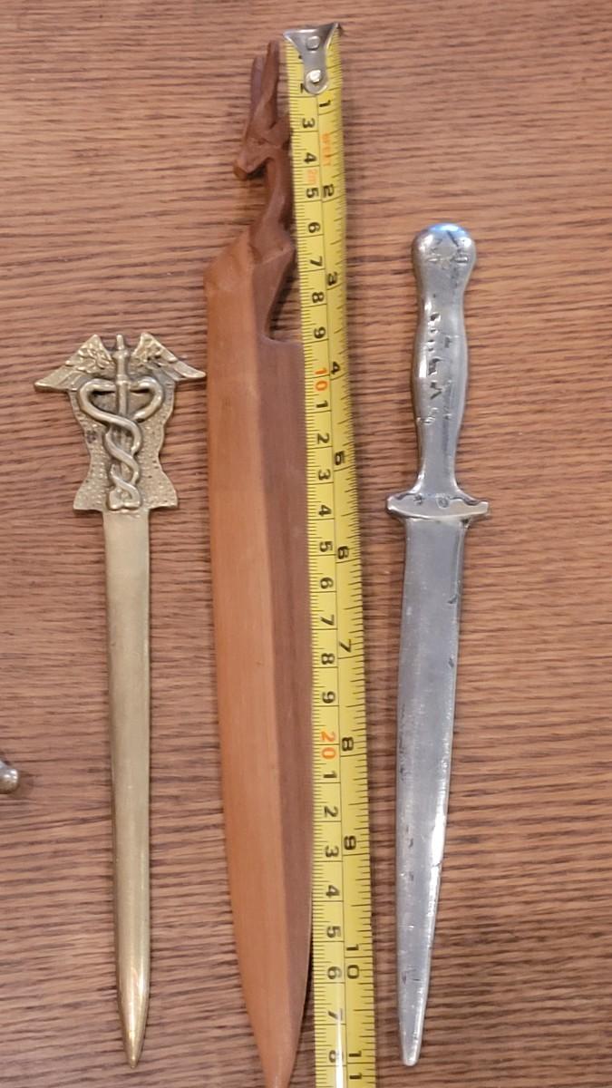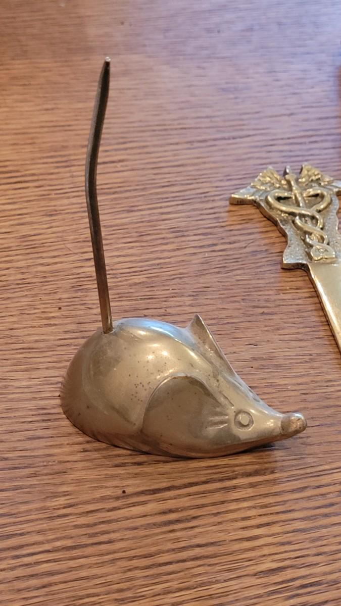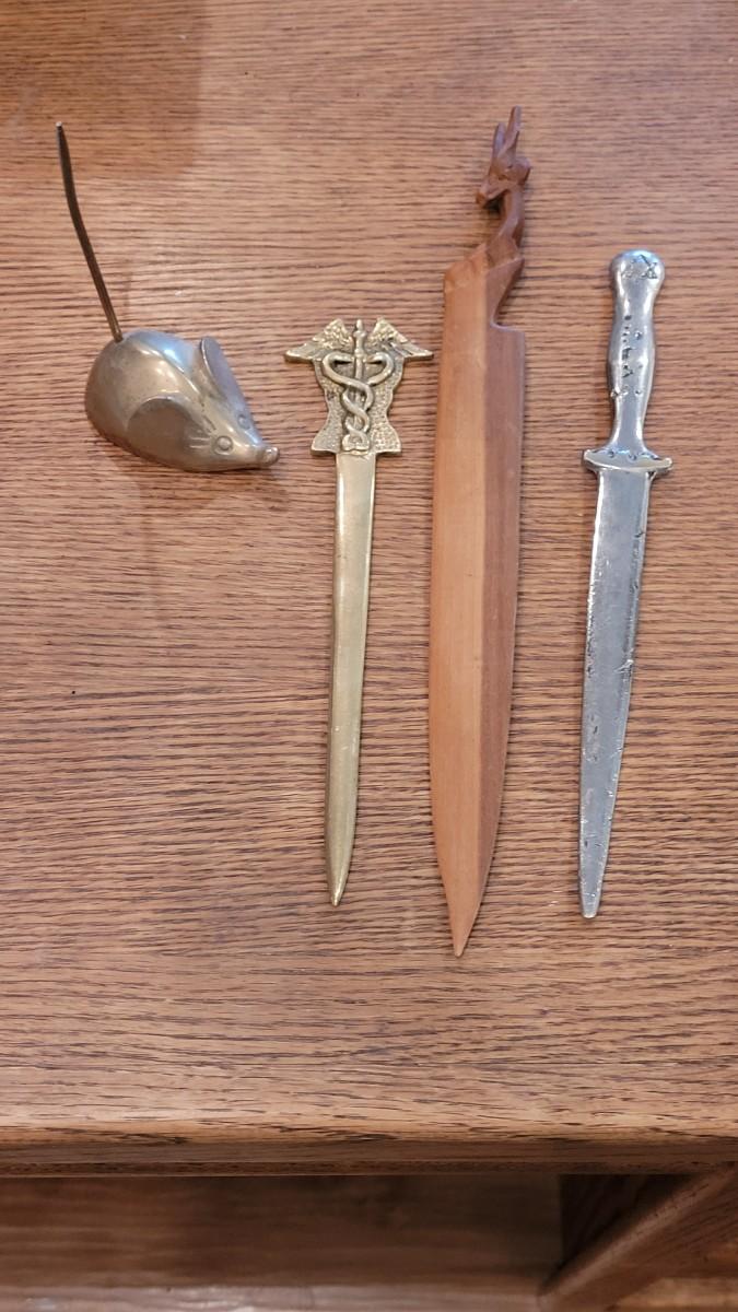 Lot 323: Letter Openers & Brass Mouse Paperweight & Memo Holder