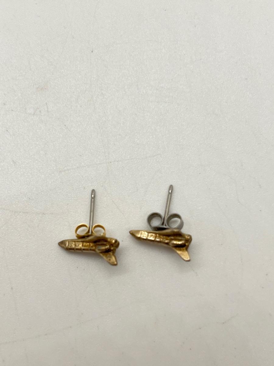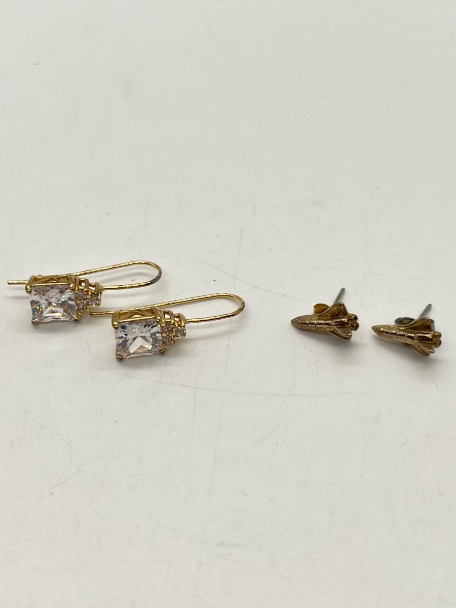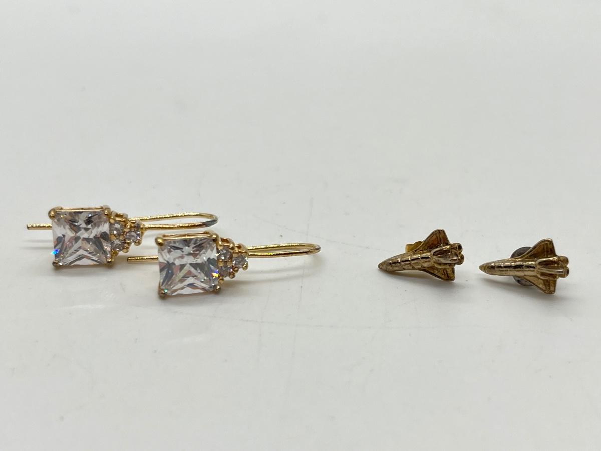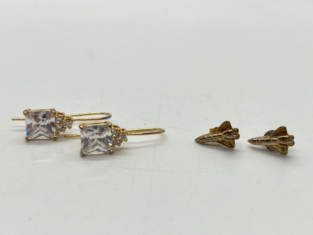 Lot 323J: Two Pairs Gold Vermeil over Sterling Silver Earrings-Space Shuttles and Large CZ