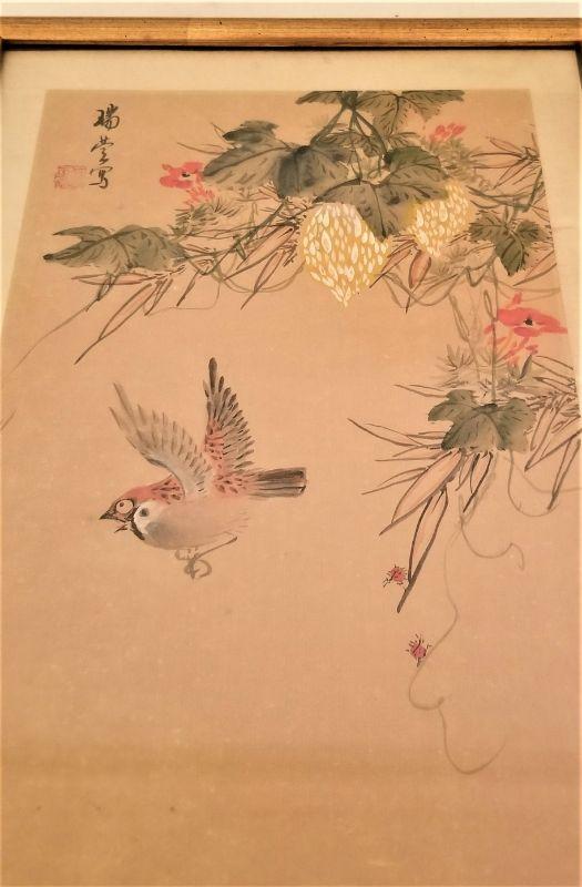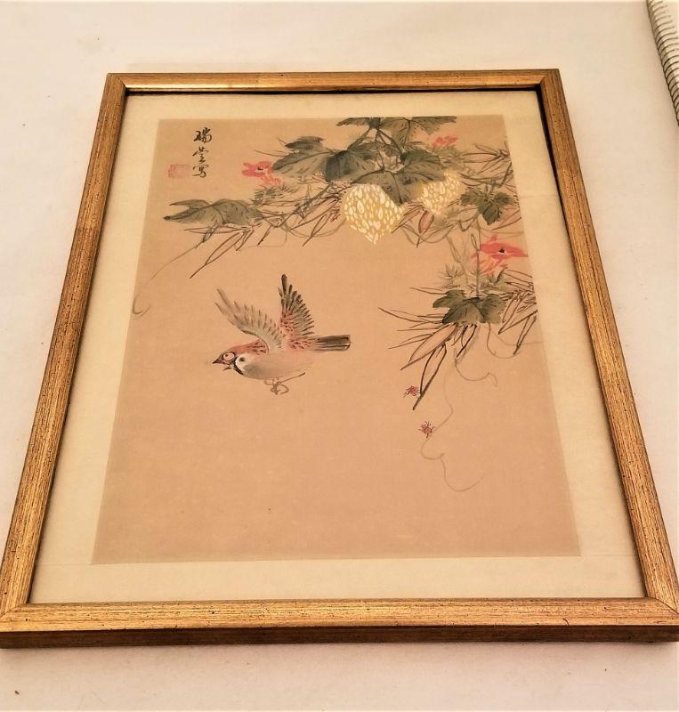 Nicely framed antique Chinese watercolor, painted on silk. Good condition. Measures 14.5" x 10.5".