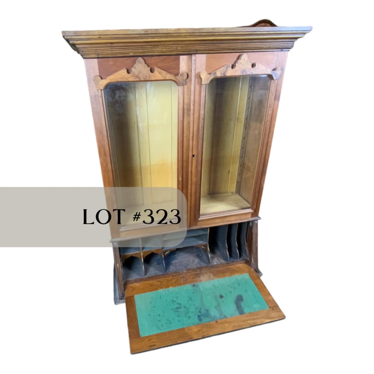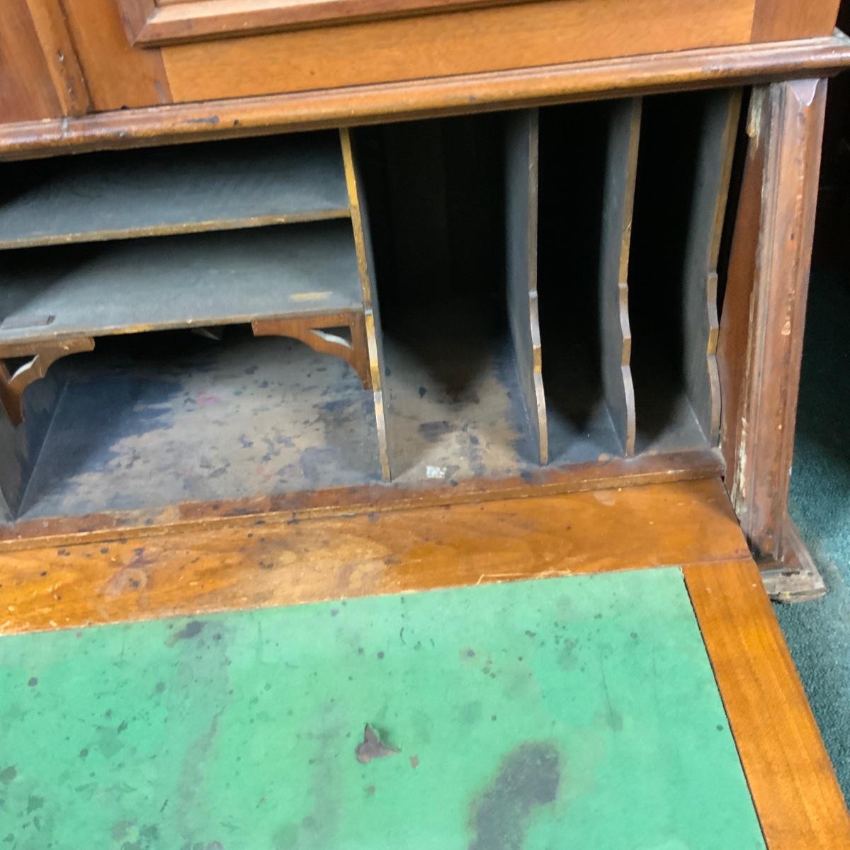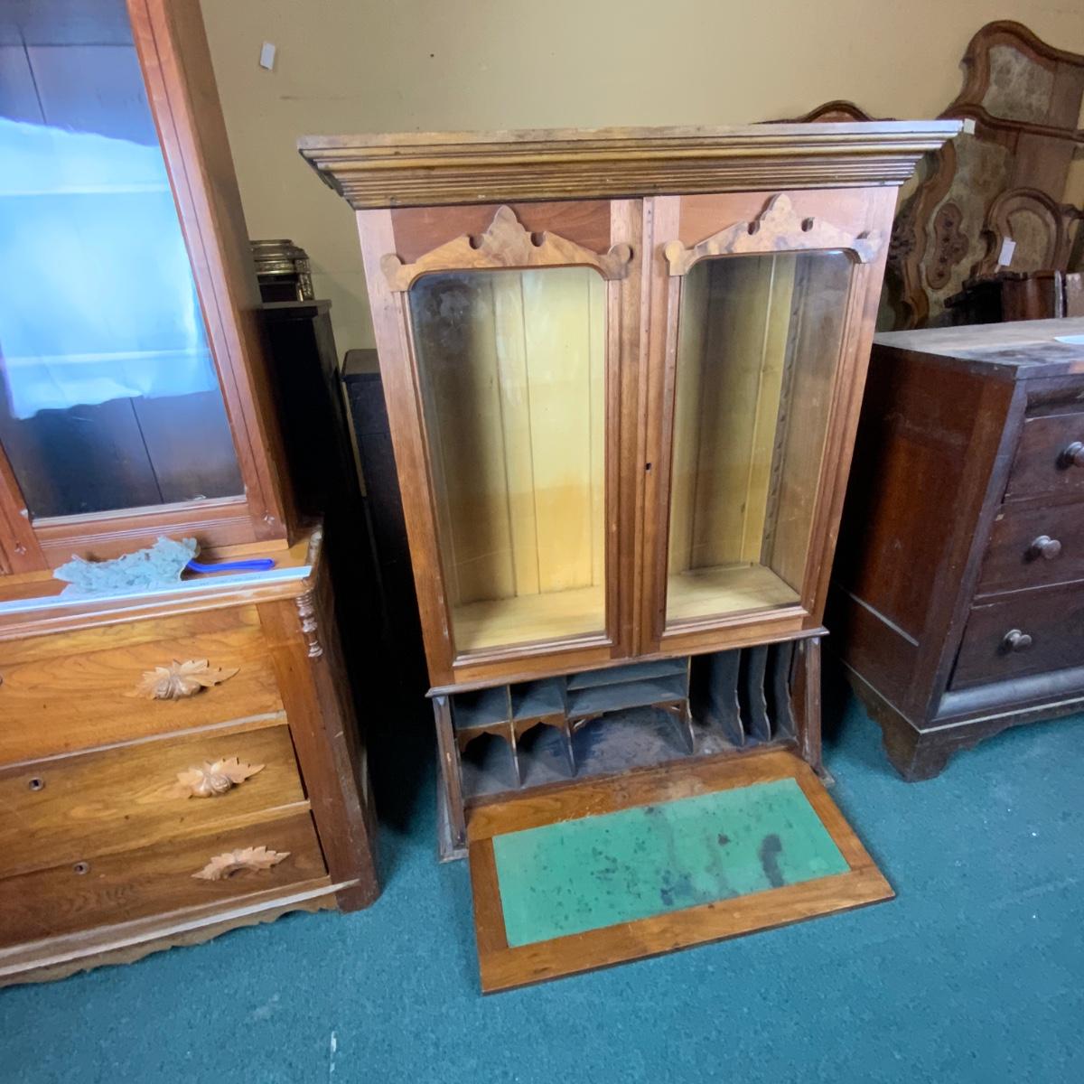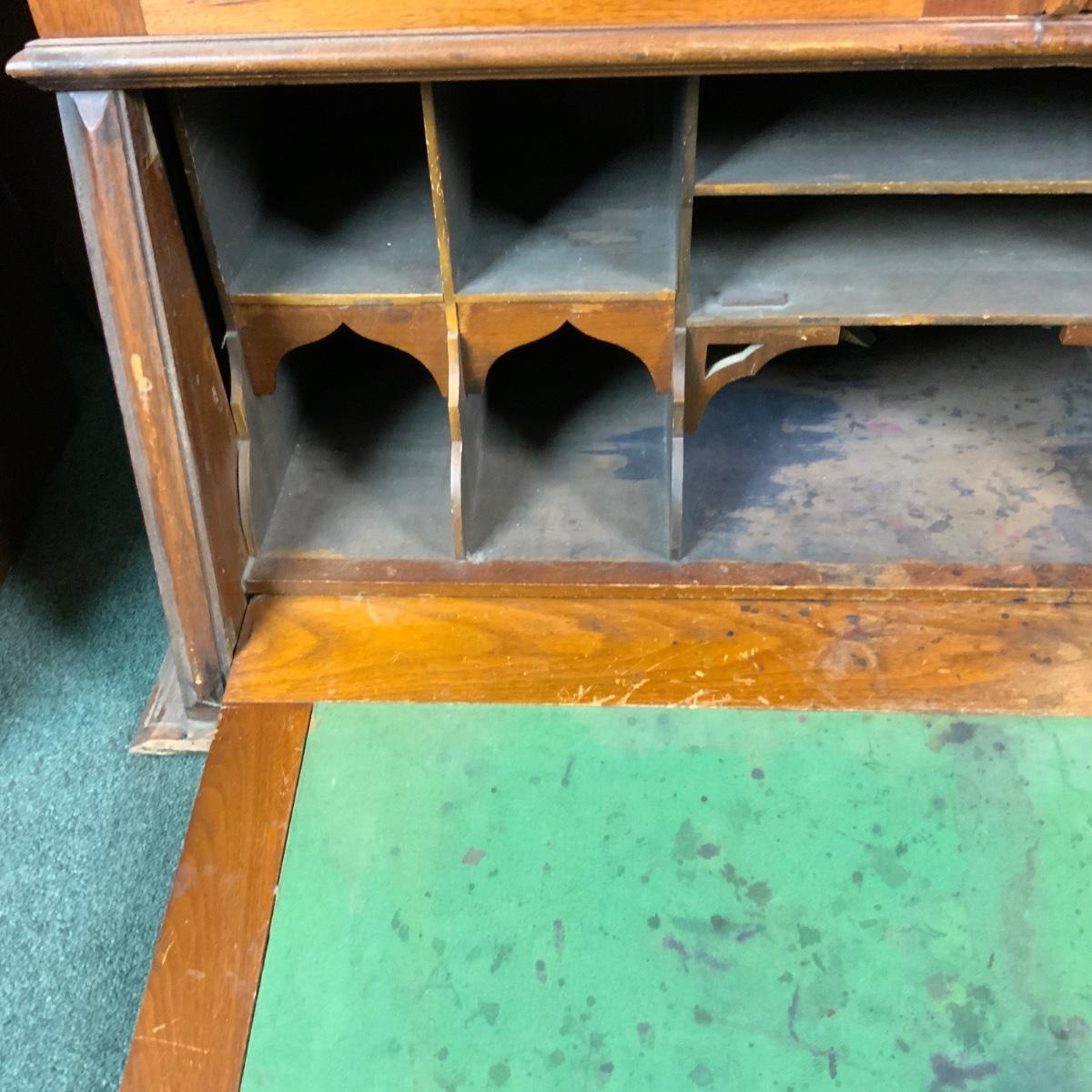 Just the top of a hutch. Nice slant desk feature. Plenty of pieces here in the auction that could be the bottom support for this piece. //::\\ Please see photos for details and condition. No attempt has been made to hide any imperfections. All items listed in this auction are warehouse items, and need to be cleaned. A majority of the items need restoration as well. All items are sold AS IS and WITHOUT GUARANTEE. If you are uncertain about an item, DO NOT BID. Due to the nature of this online auction in-person inspection is HIGHLY recommended. All Sales are FINAL. Pick Up Times are FIRM. Please confirm with your own schedule that you can pick up in the scheduled times listed in the Terms and Conditions. Any questions please message the auctioneer. DO NOT Contact The Harp Gallery.