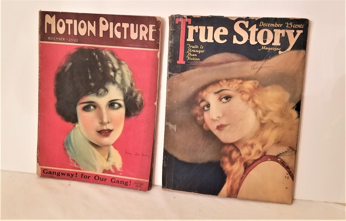 I would buy these for the ads alone! Very cool antique (almost 100 years old!) Motion Picture and True Story Magazines - November 1925 and December 1924. First page has separated, but complete. True Story full of fiction about "girls gone wrong" - 1920's style!