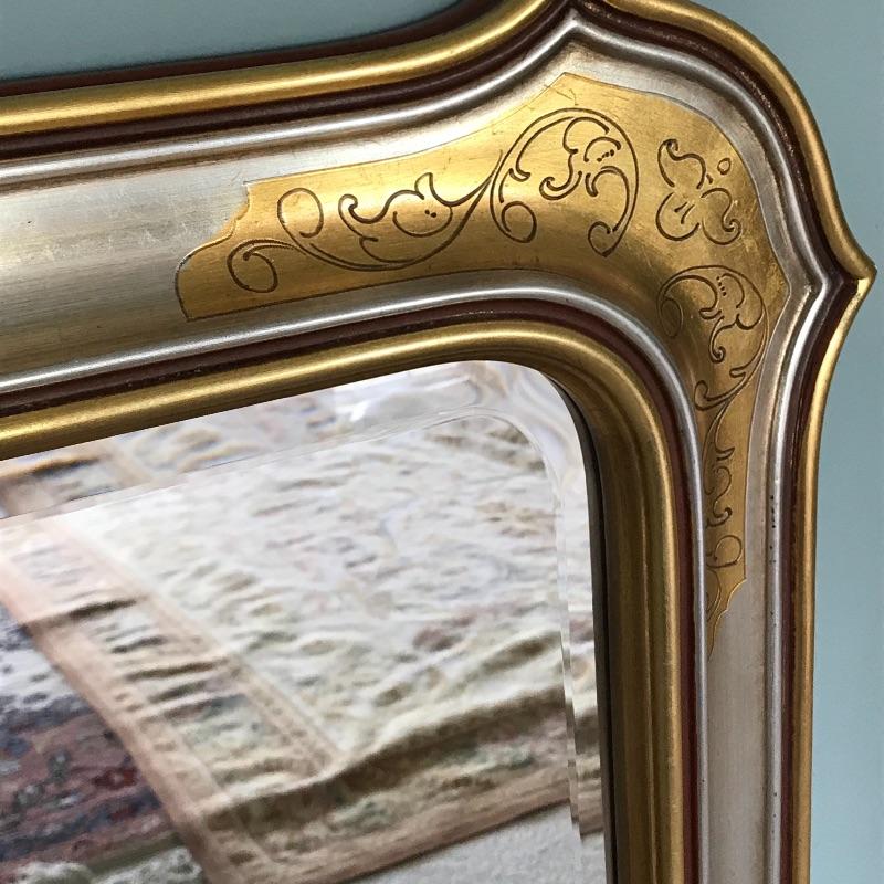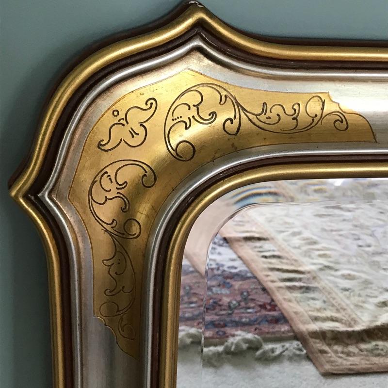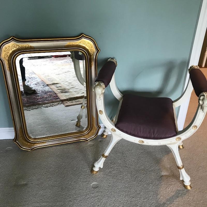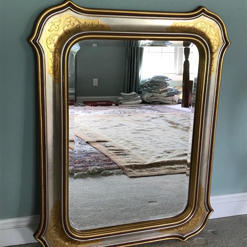 Measures approximately 26” x 21” x 28”h. Lot also includes a gold and silver mirror with copper colored accents that measures approximately 28” x 35”. See images.