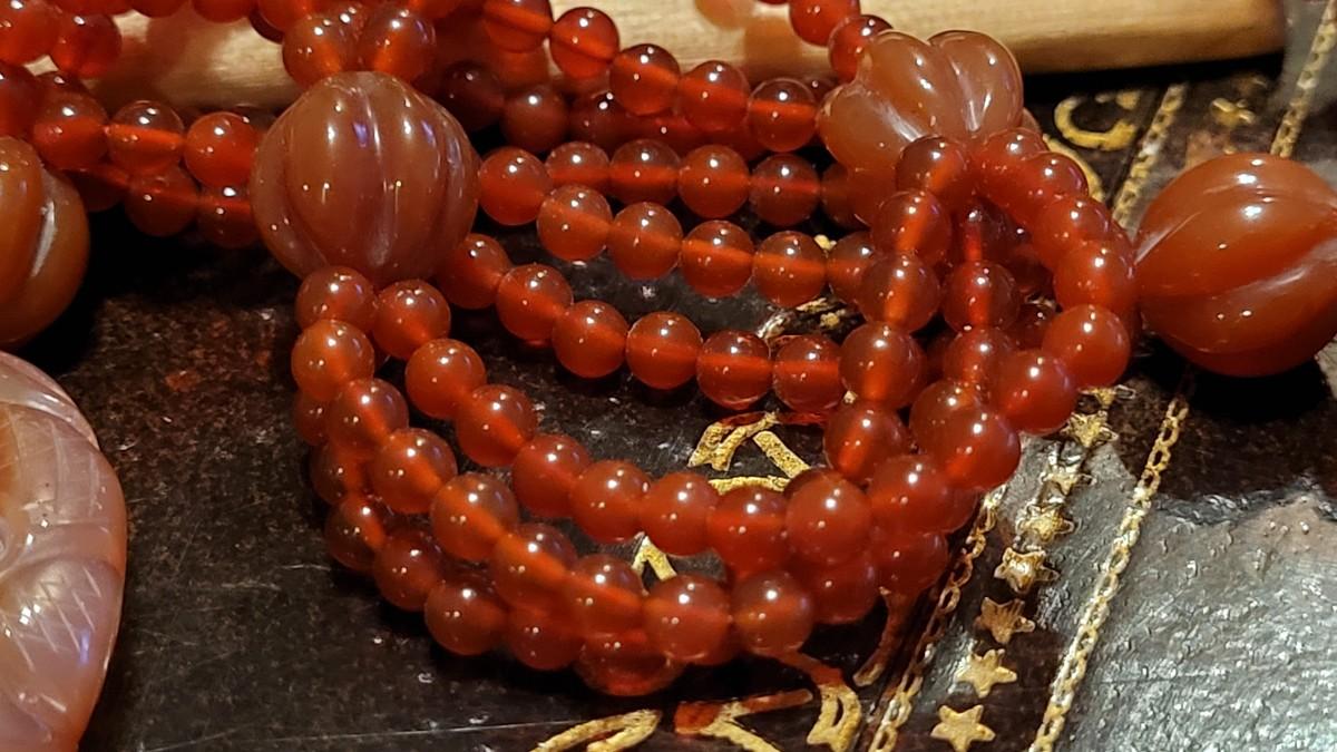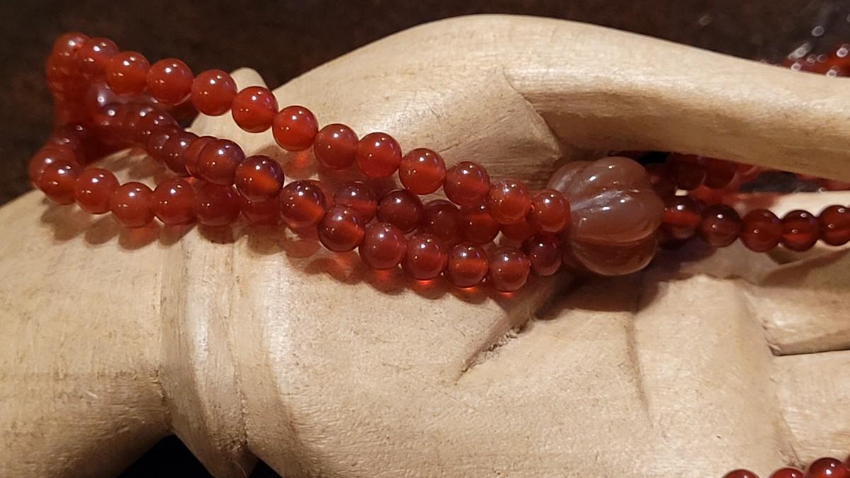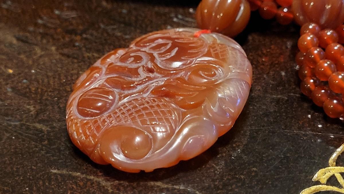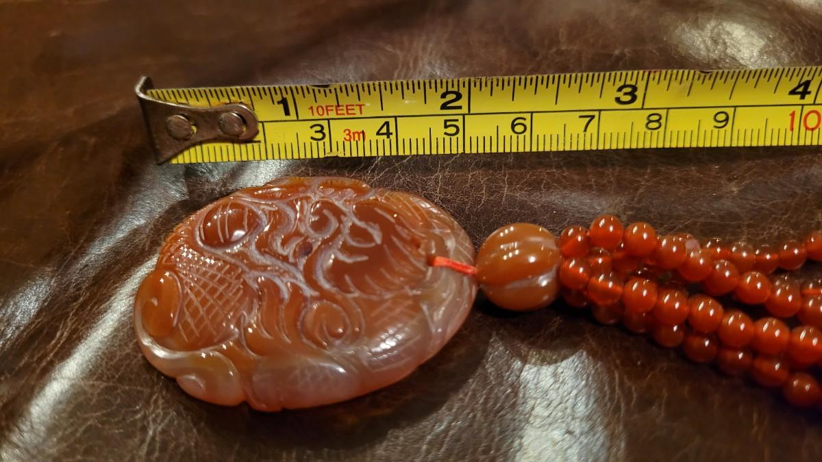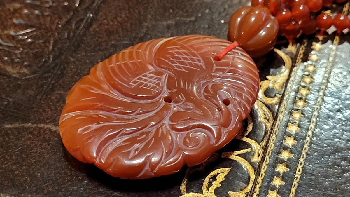 Lot 323: Vintage Asian CORNELIAN Bead Necklace with Matching Carved Dragon Pendant