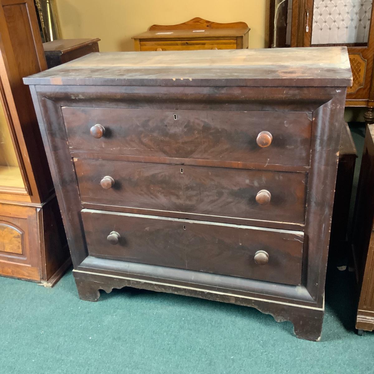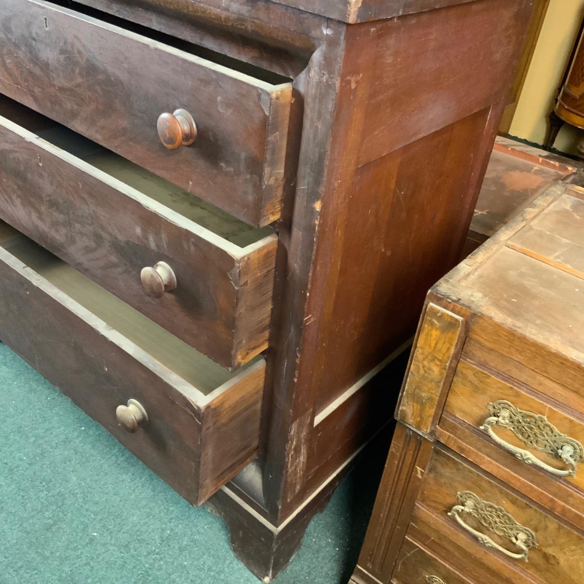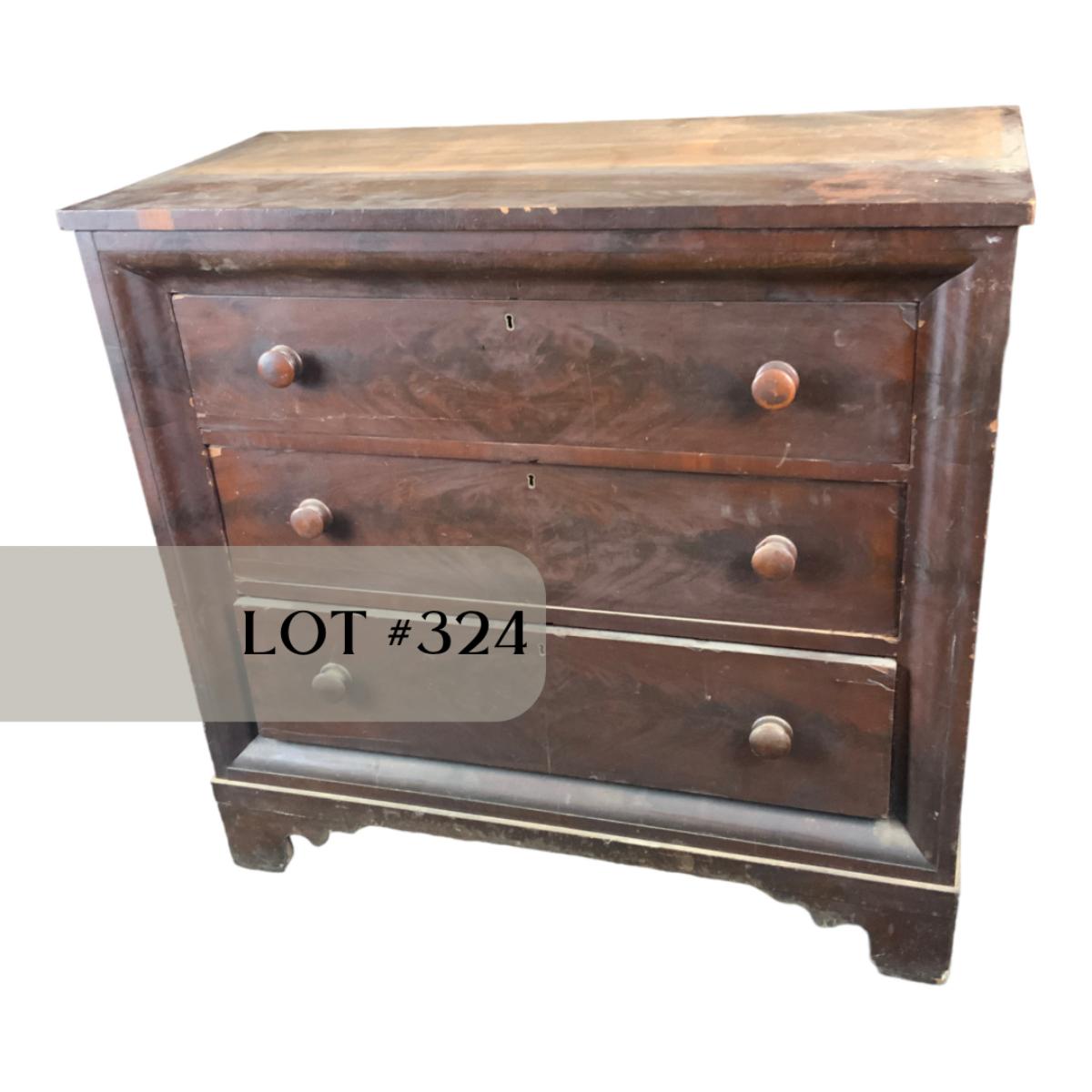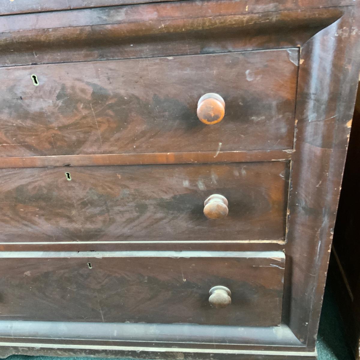 1800s Chest of Drawers. Needs some restoration to bring it back to its original glory. //::\\ Please see photos for details and condition. No attempt has been made to hide any imperfections. All items listed in this auction are warehouse items, and need to be cleaned. A majority of the items need restoration as well. All items are sold AS IS and WITHOUT GUARANTEE. If you are uncertain about an item, DO NOT BID. Due to the nature of this online auction in-person inspection is HIGHLY recommended. All Sales are FINAL. Pick Up Times are FIRM. Please confirm with your own schedule that you can pick up in the scheduled times listed in the Terms and Conditions. Any questions please message the auctioneer. DO NOT Contact The Harp Gallery.