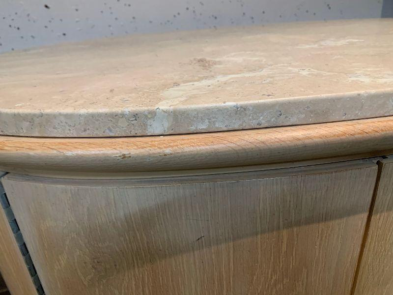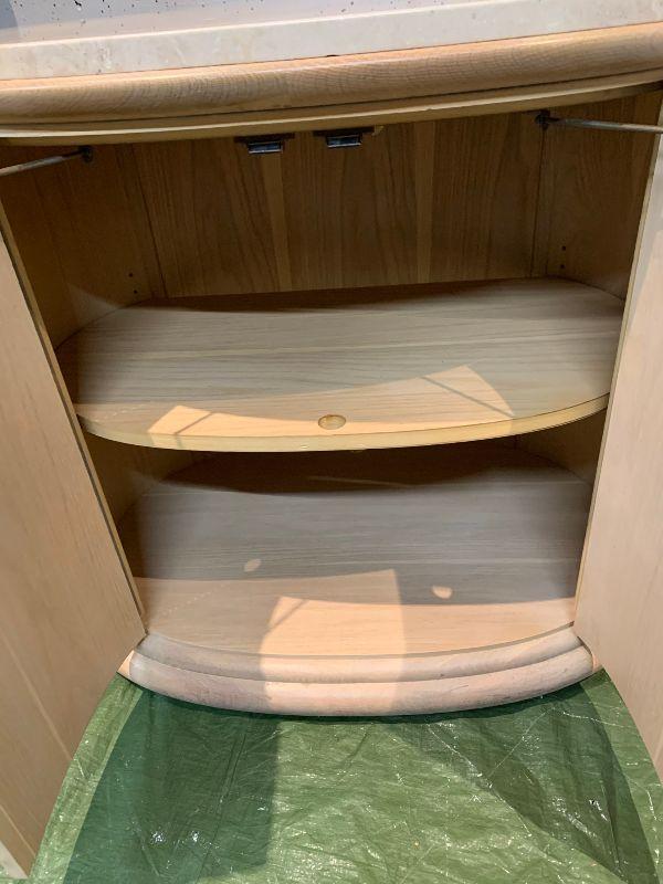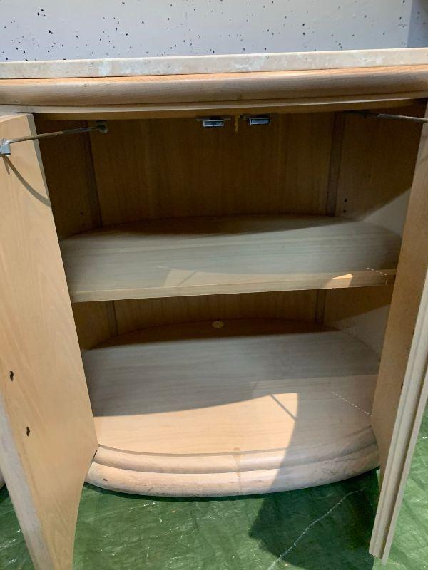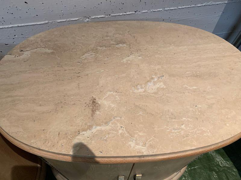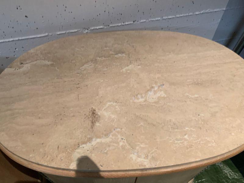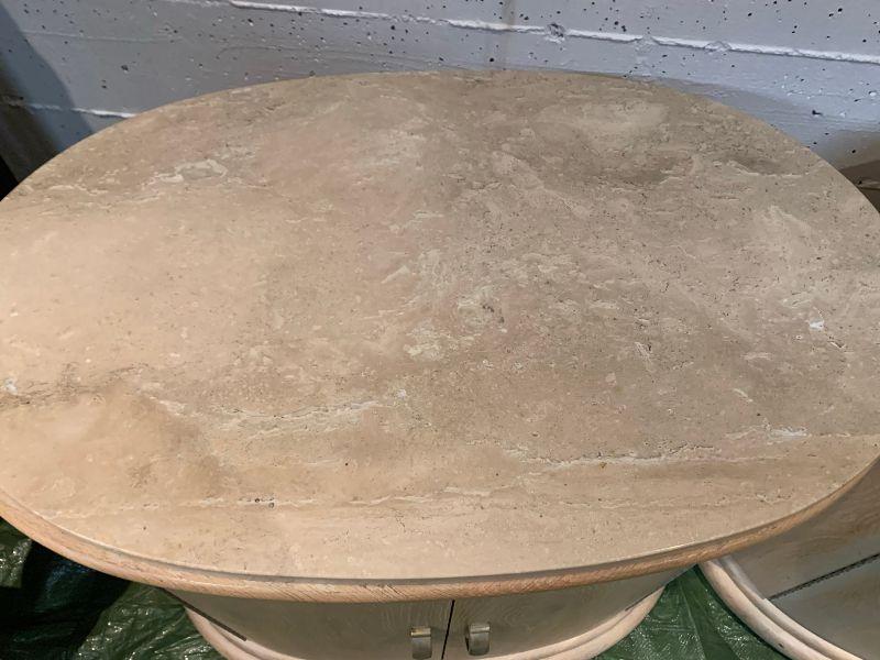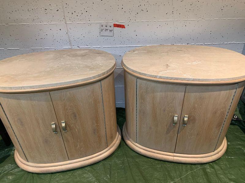2 oval night stands with one shelf inside. Granate top very heavy.