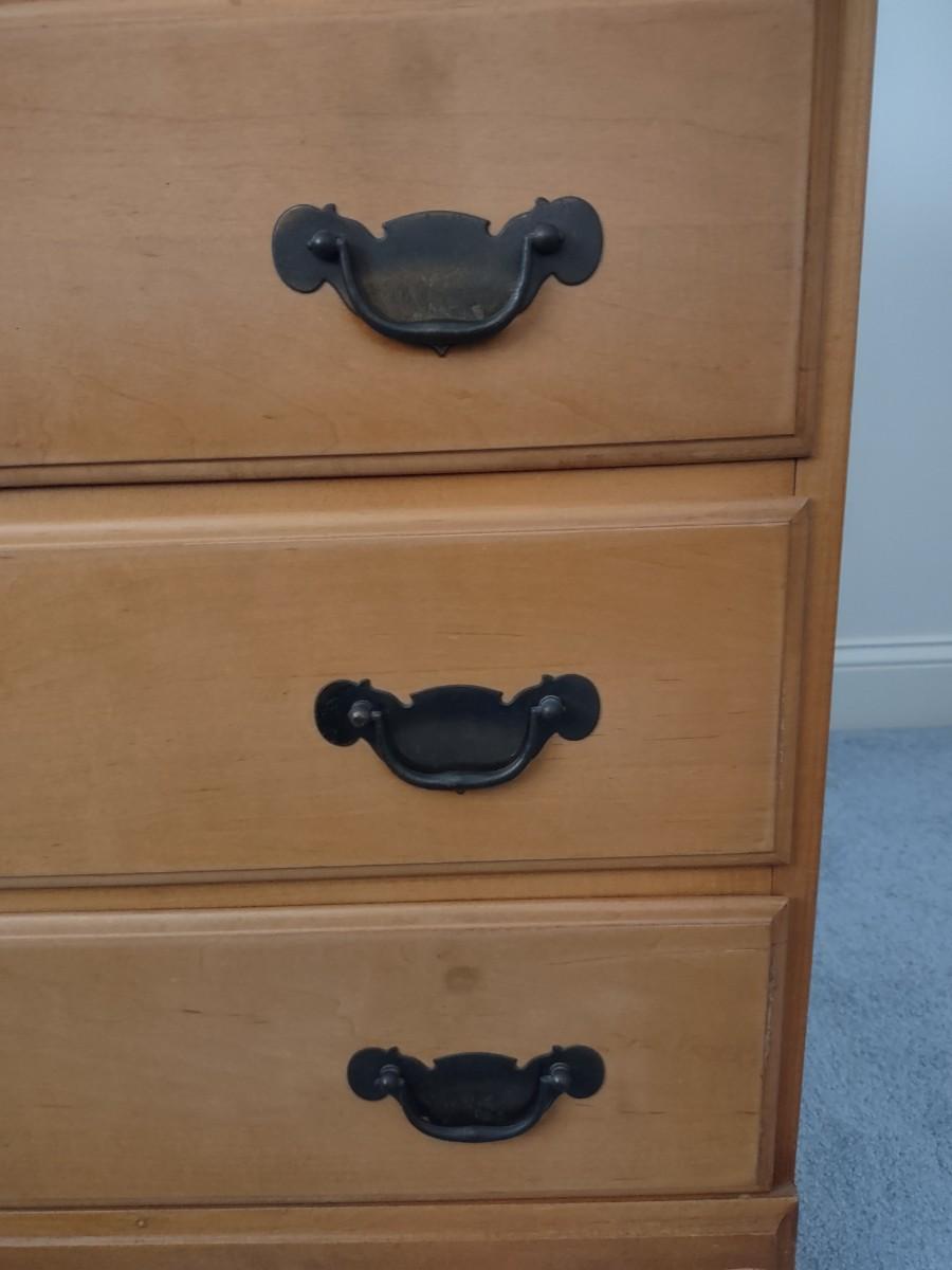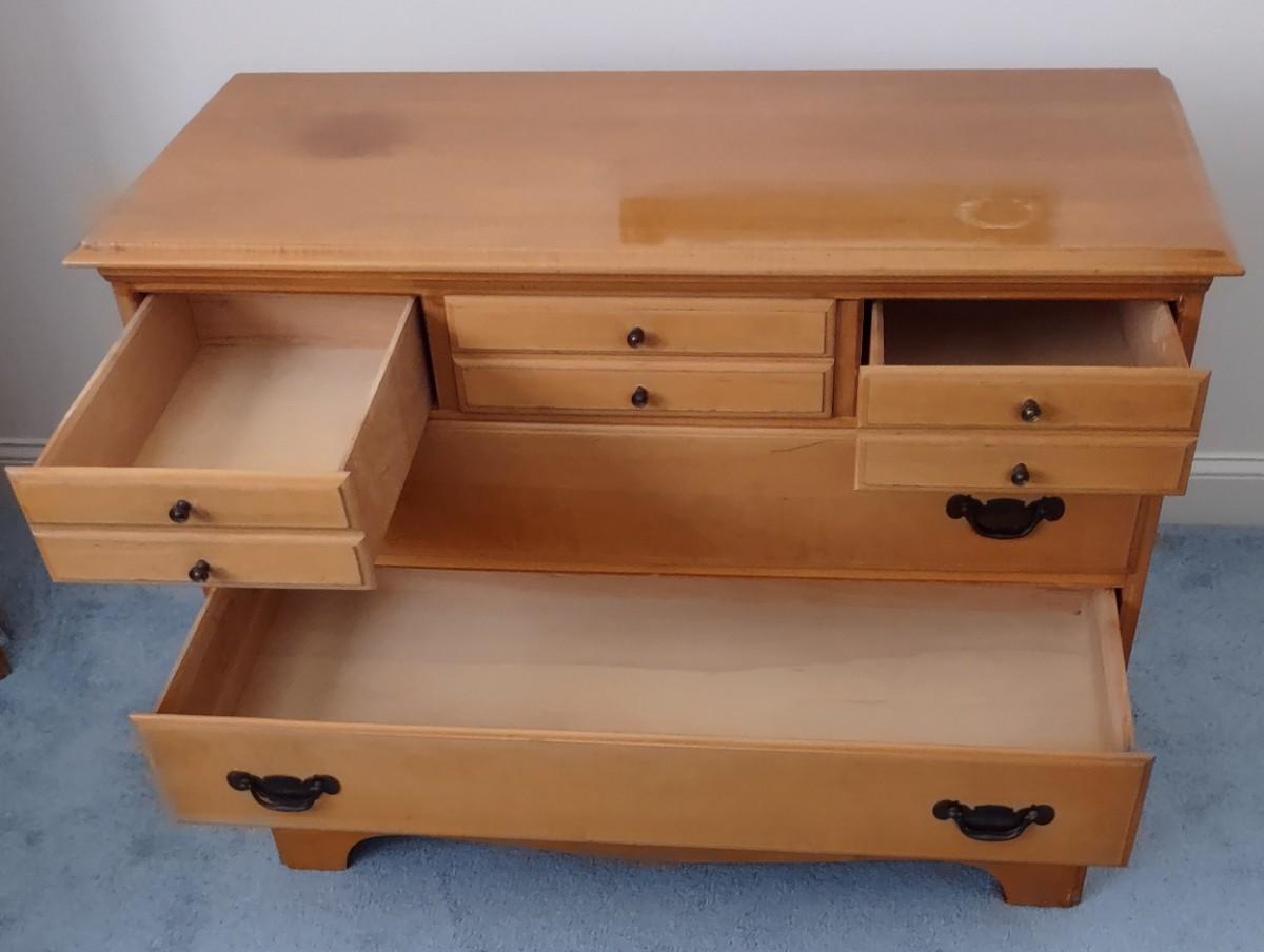 6 Drawer Wooden Dresser 42×19×33. Please see all pictures as they are the best representation of the items. The pictures show condition, measurements if taken, and what is included in the lot. Due to the large amount that we photograph and the time frame, we are not always able to take measurements. All items unless noted, are pre-owned and have been used. If you purchased furniture, you must bring help. We do not allow one person to carry large furniture out on their own. Bring help, tools and a truck for the safety of our client’s homes, and your personal safety. Company policy. Thank you.