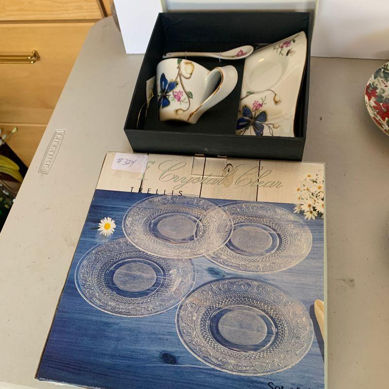 Lot 324. Cups, saucers, glasses dishes