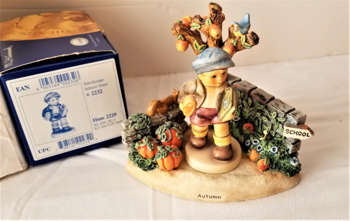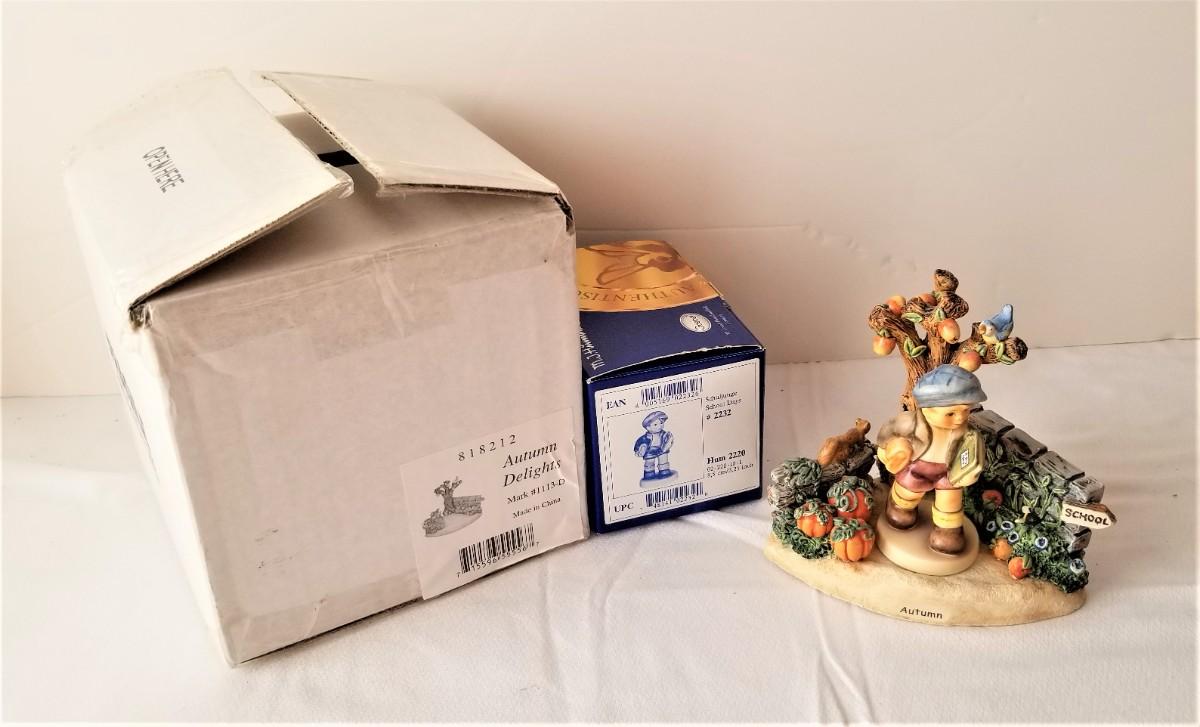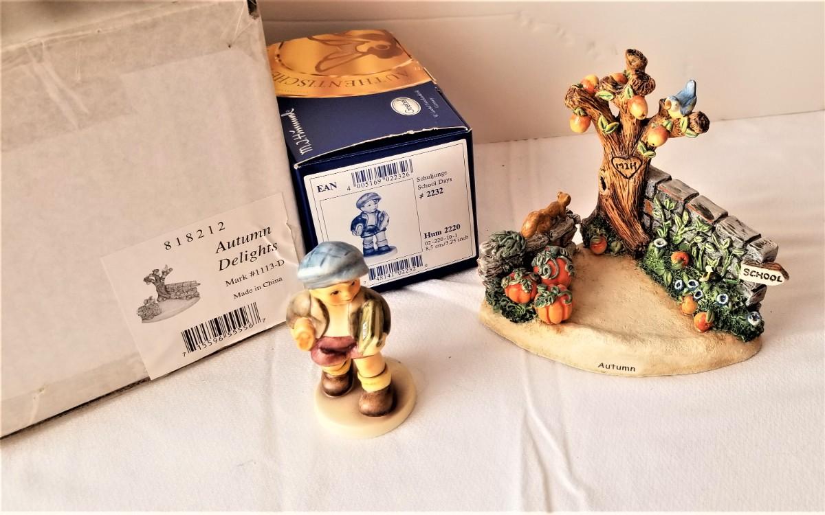 Hummel 2 piece set with boxes - "Autumn Delights" and "School Days" - figurine is 3.25" tall, good condition.