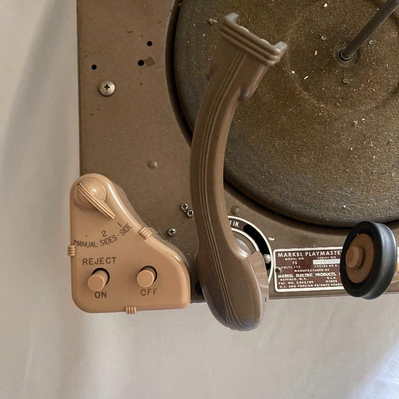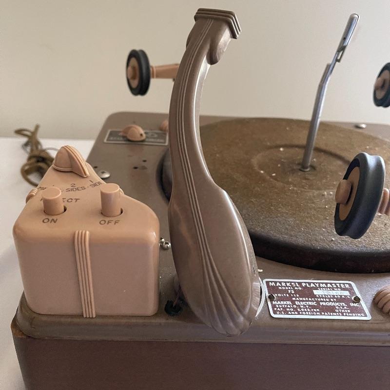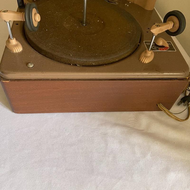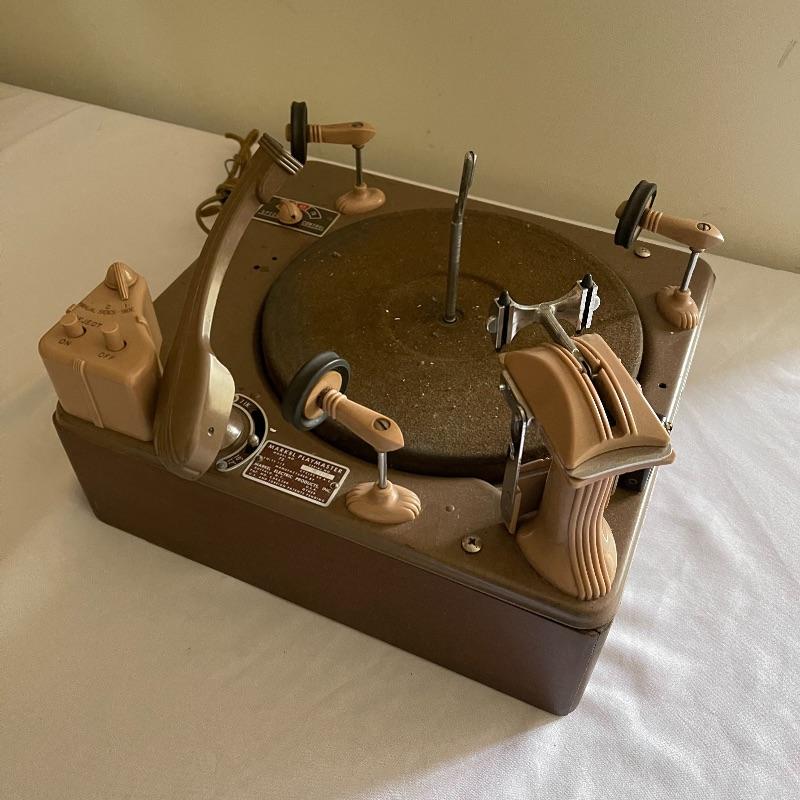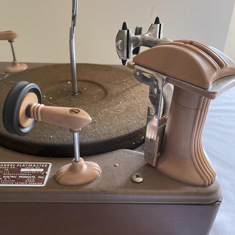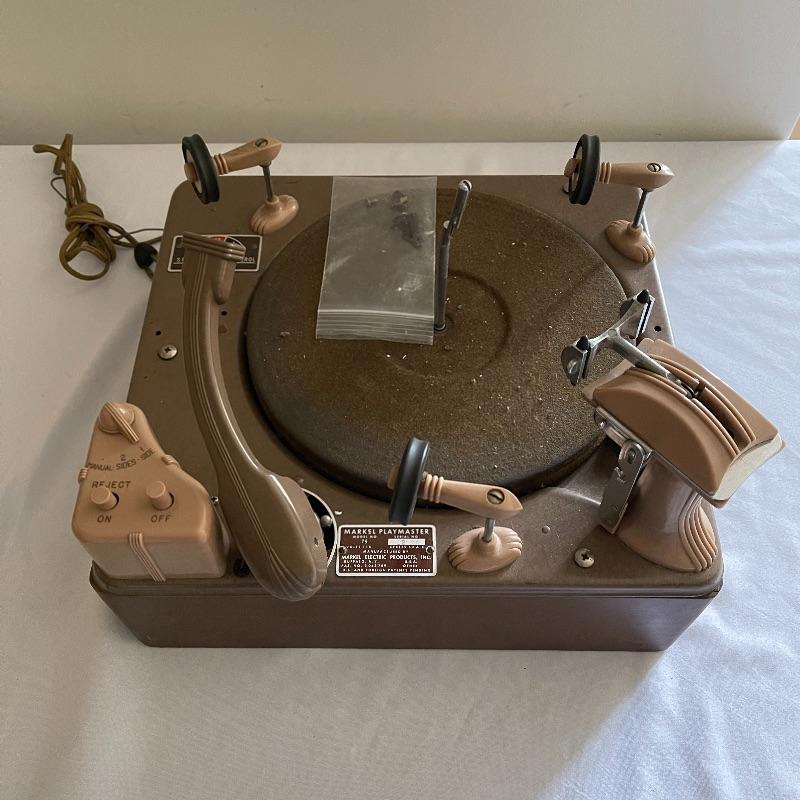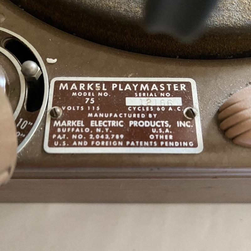 Markel playmaster turntable, model number 75. The serial number is 12166. There is a small bag of parts, see photo. When plugged in, it made a humming noise.