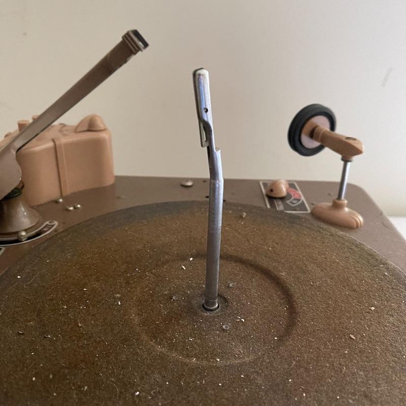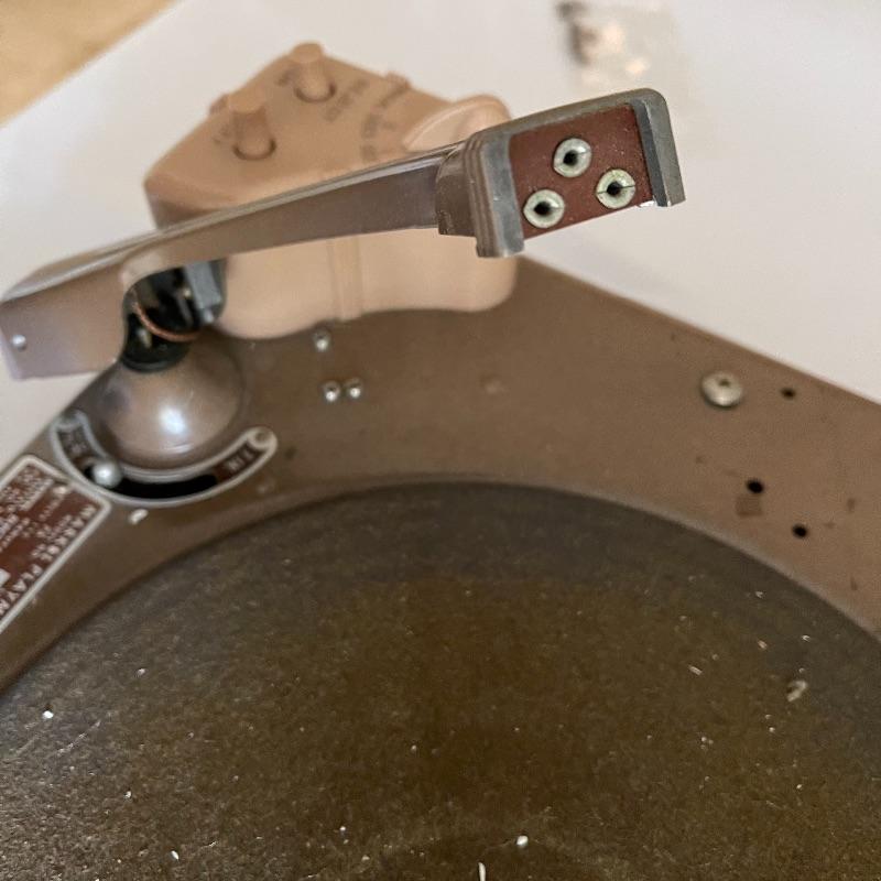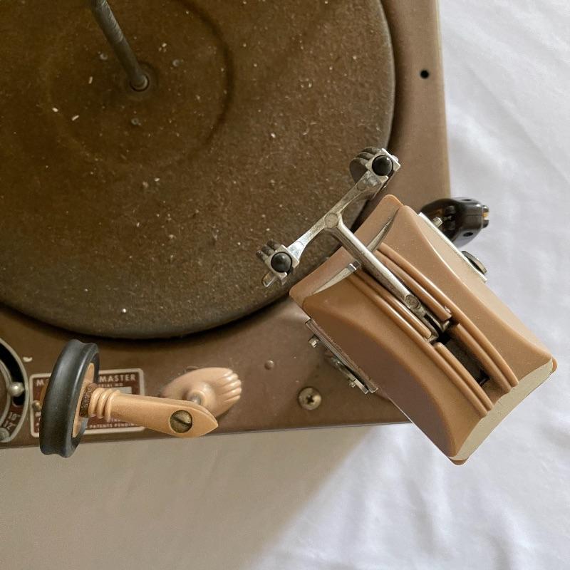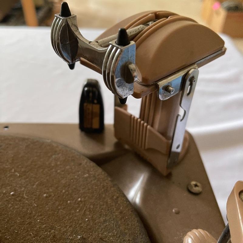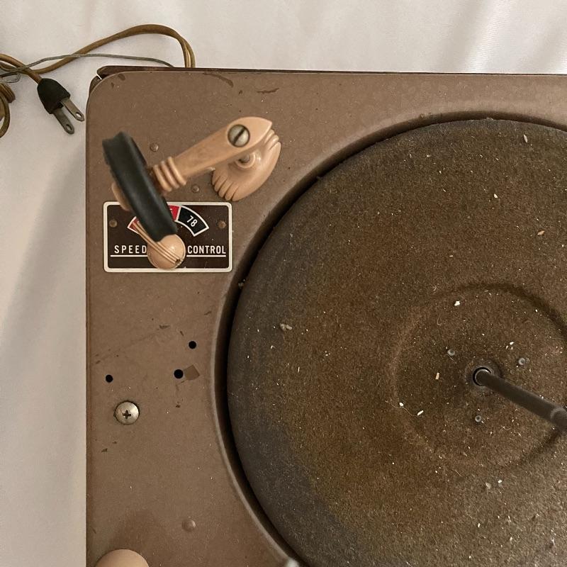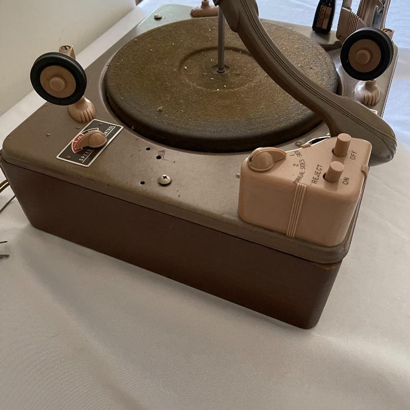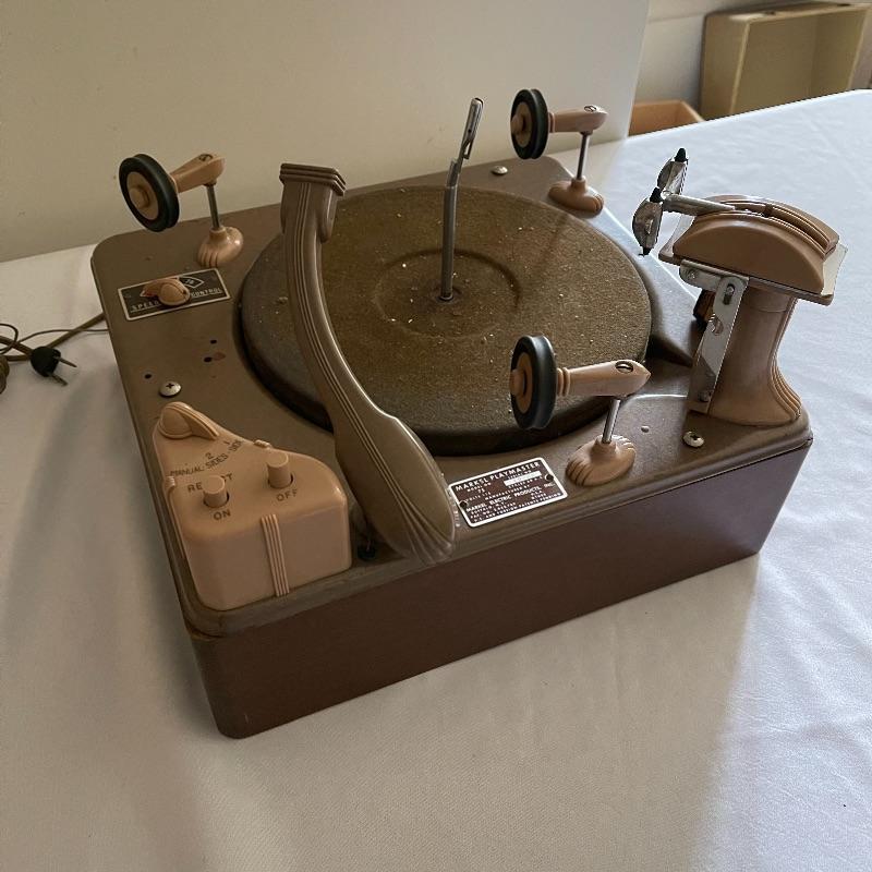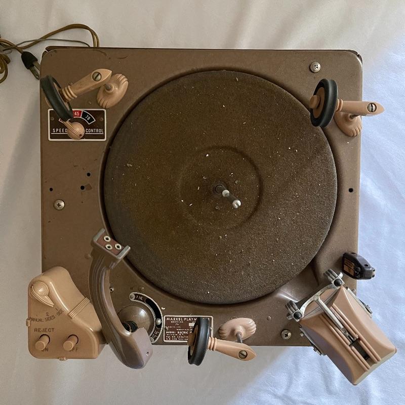 Markel playmaster turntable, model number 75. The serial number is 12166. There is a small bag of parts, see photo. When plugged in, it made a humming noise.