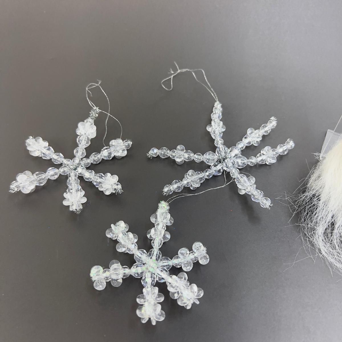 Three Clear Beaded Snowflakes & Felt / Knit Gnome