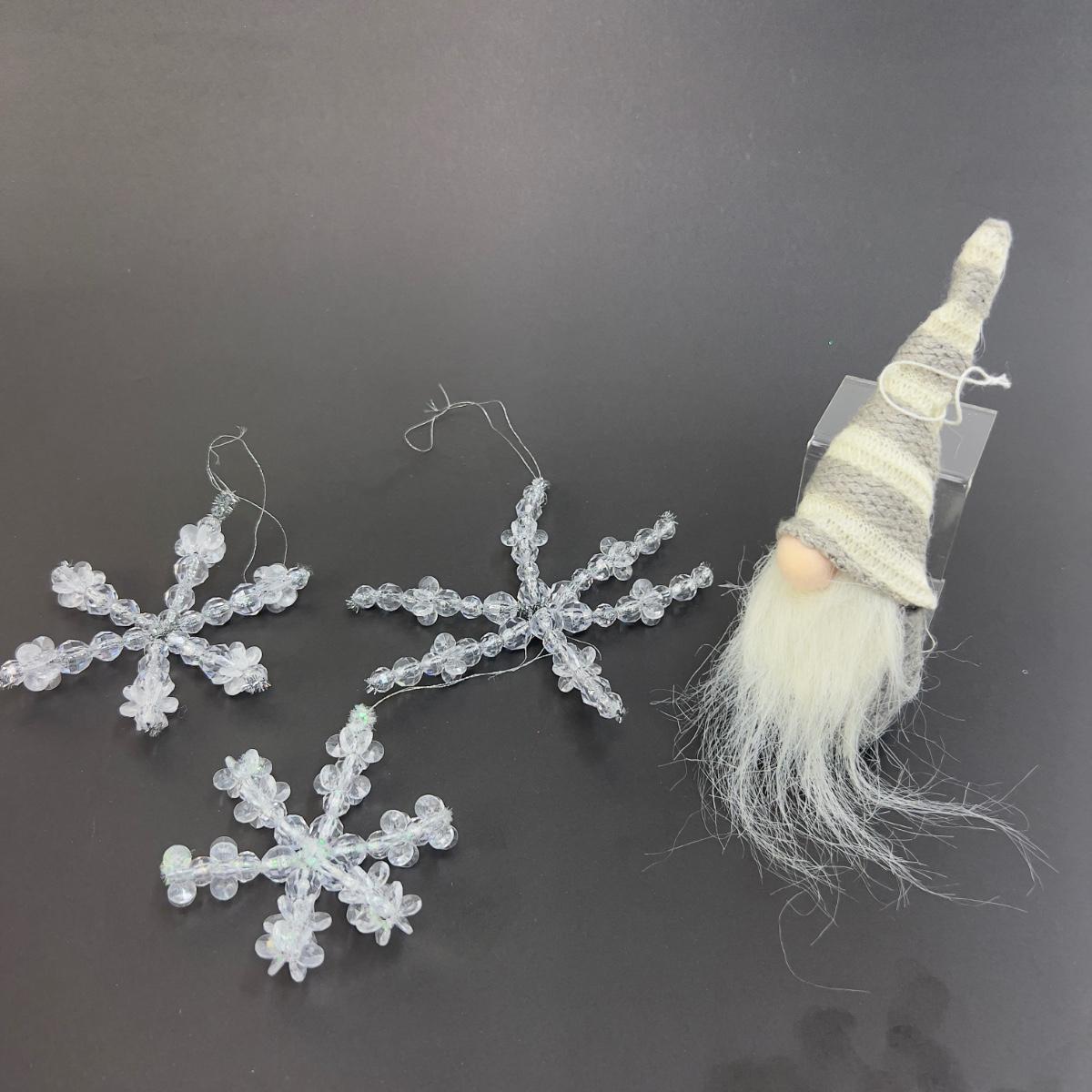 Lot 324. Three Clear Beaded Snowflakes & Felt / Knit Gnome