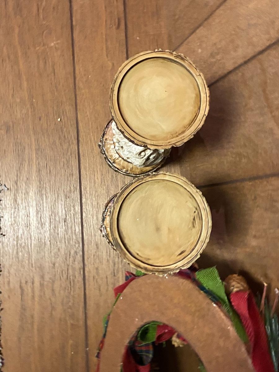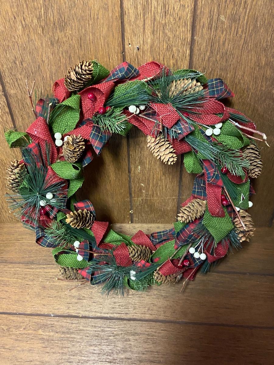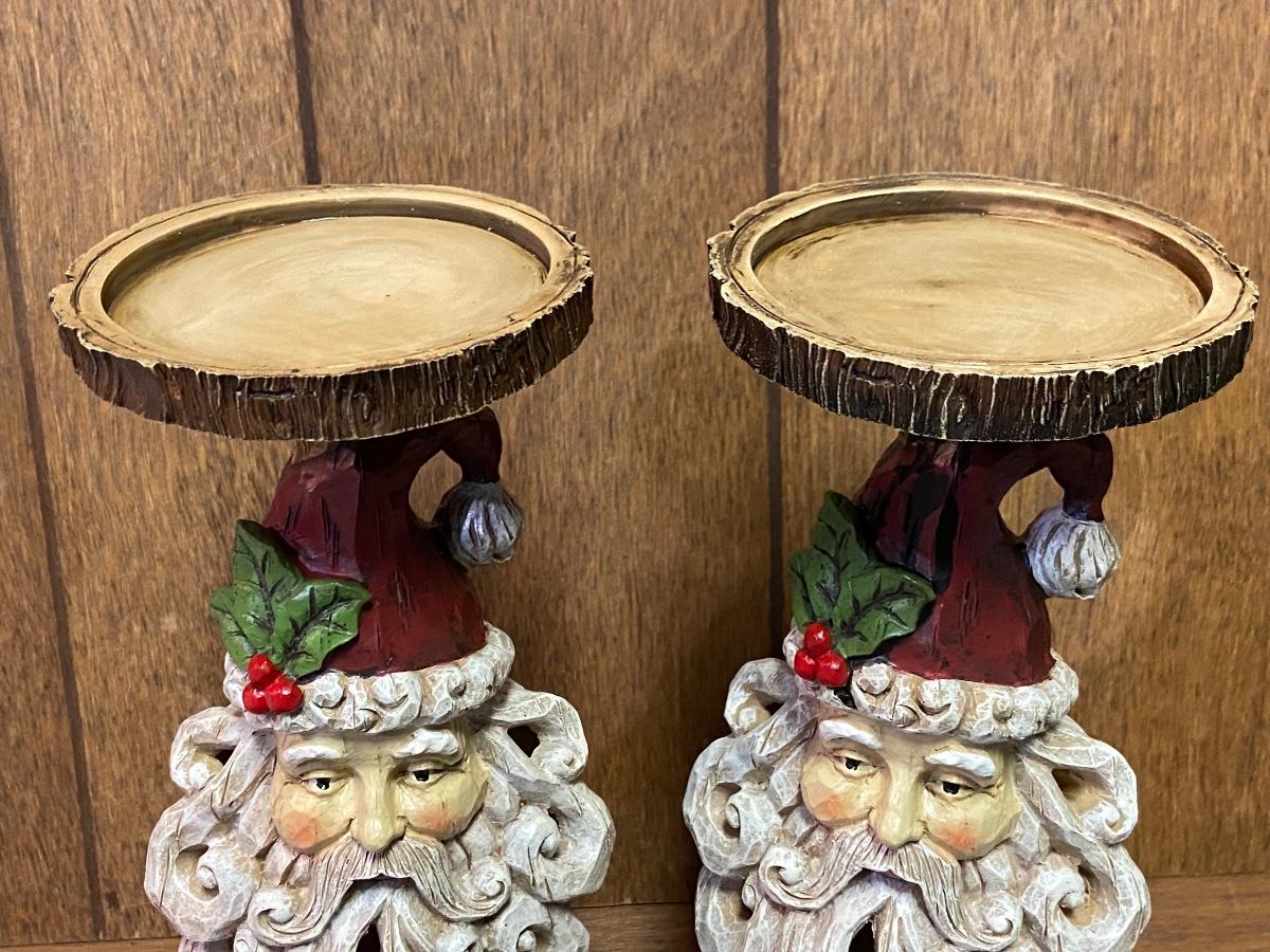 Lot 324: New Burlap/Evergreen Wreath and Santa Candlesticks(lot 2 of 2)