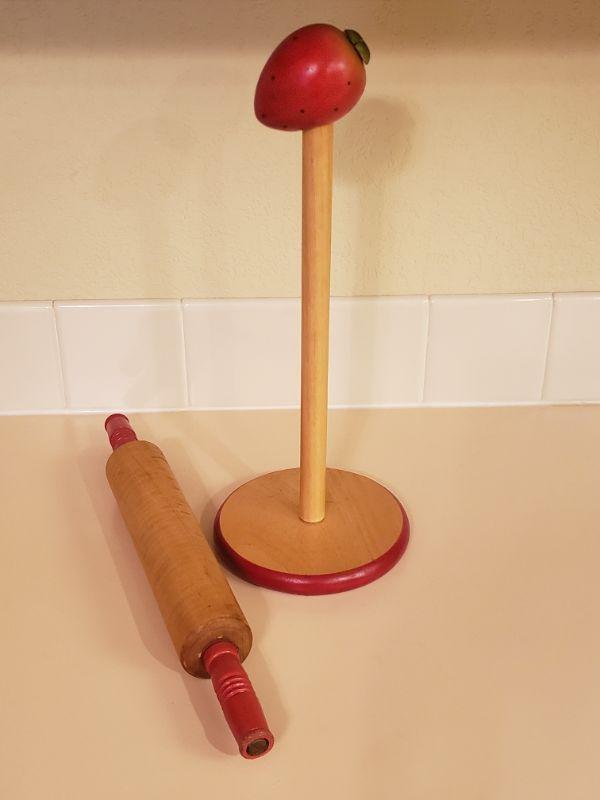 Lot 325: Vintage Rolling Pin and Paper Towel Holder