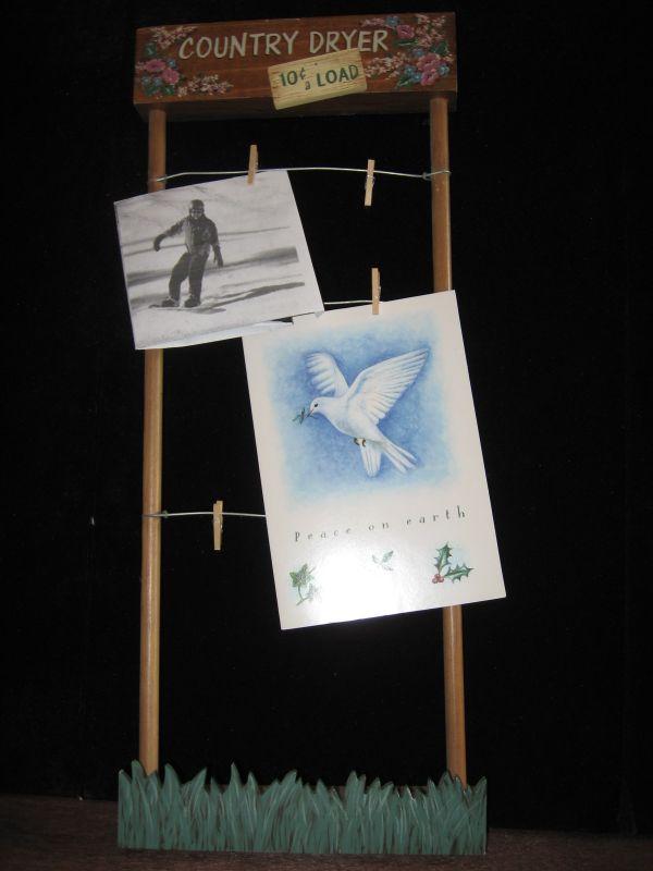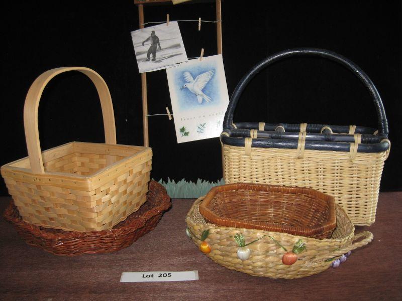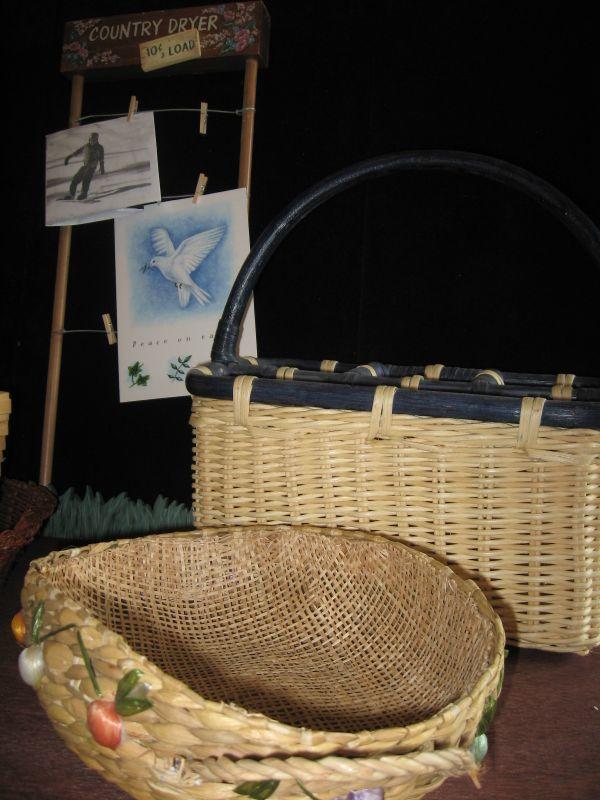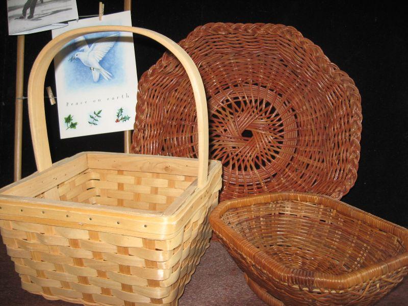 Vintage Style Photo Clips w/knit doll sweater, a Wicker Basket with multiple compartments for desk/kitchen and four smaller baskets.