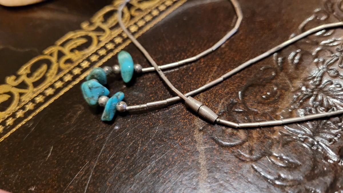 Lot 325: Vintage Sterling Silver Necklace w/ Turquiose Stones
