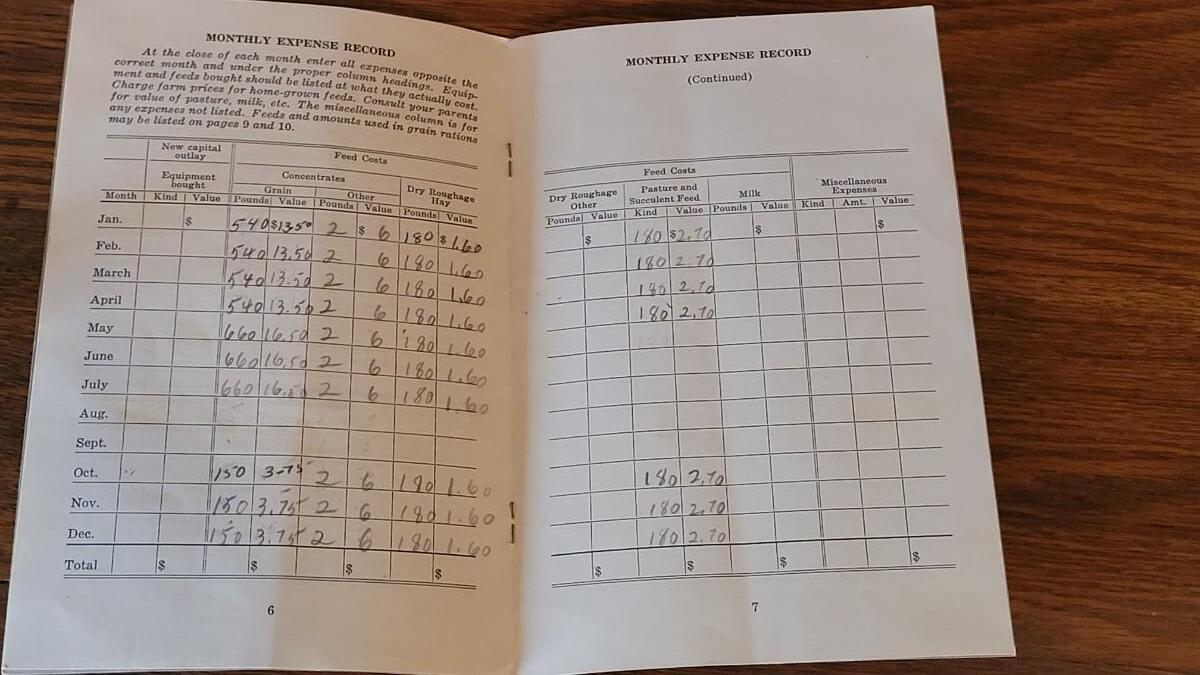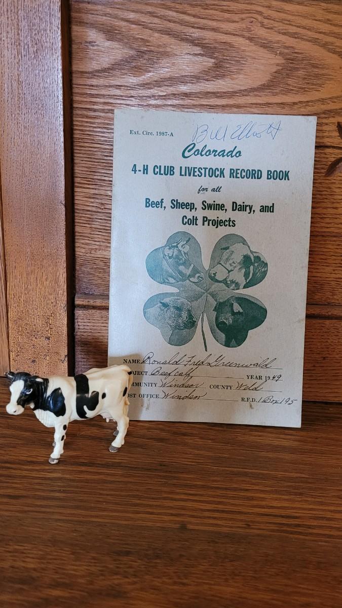 Lot 325: 1944 Weld County 4H Livestock Record Book and Vintage Cow Toy