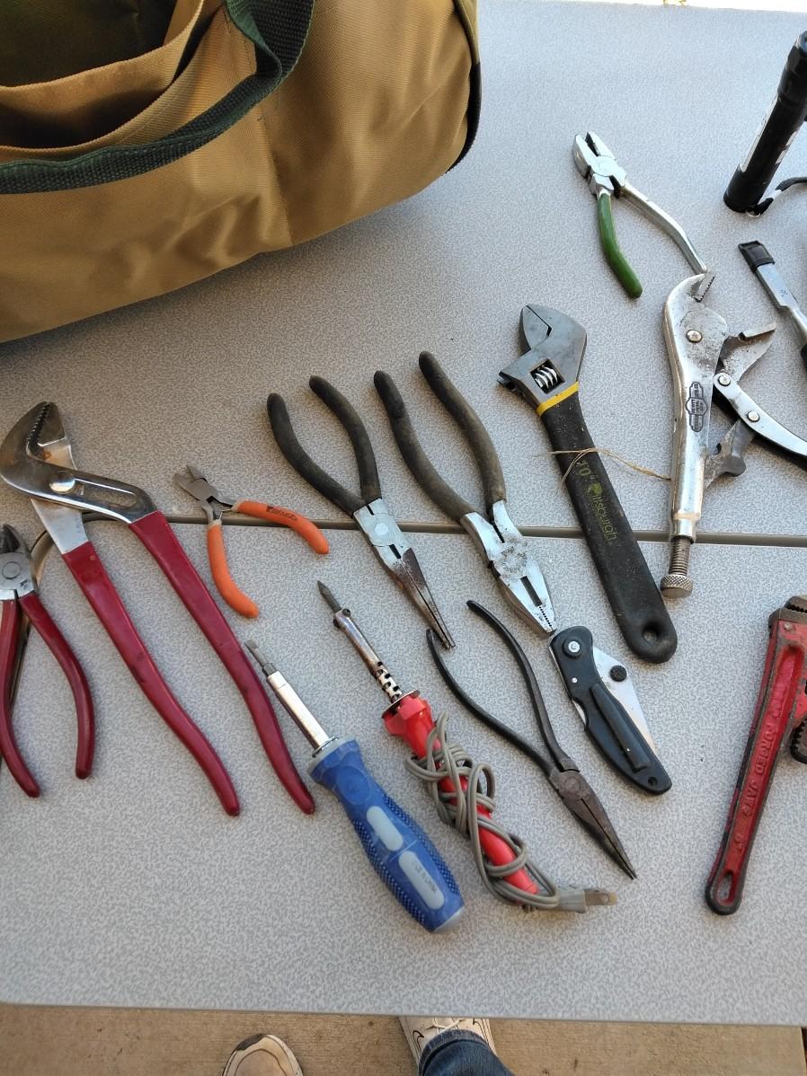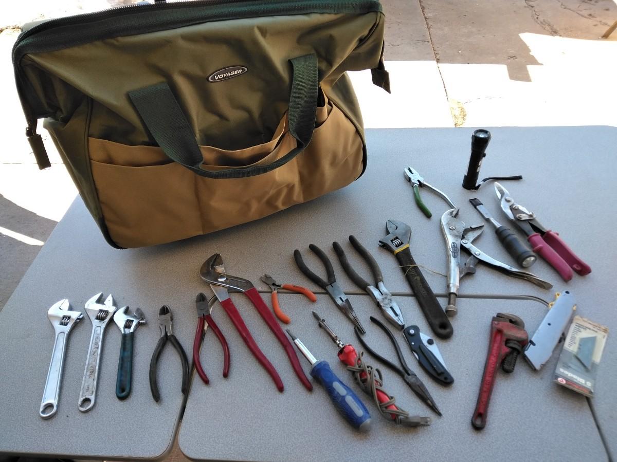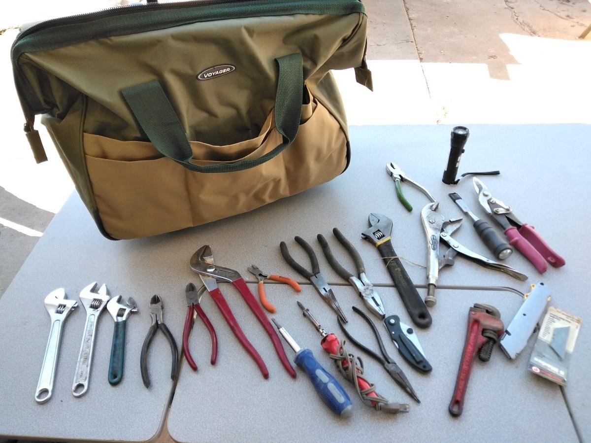 VARIETY OF HAND TOOLS AND TOOL BAG