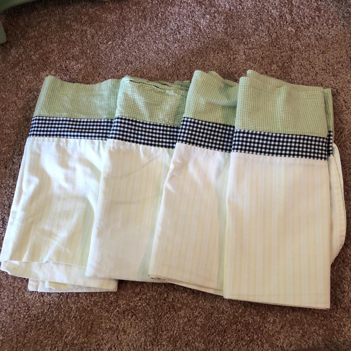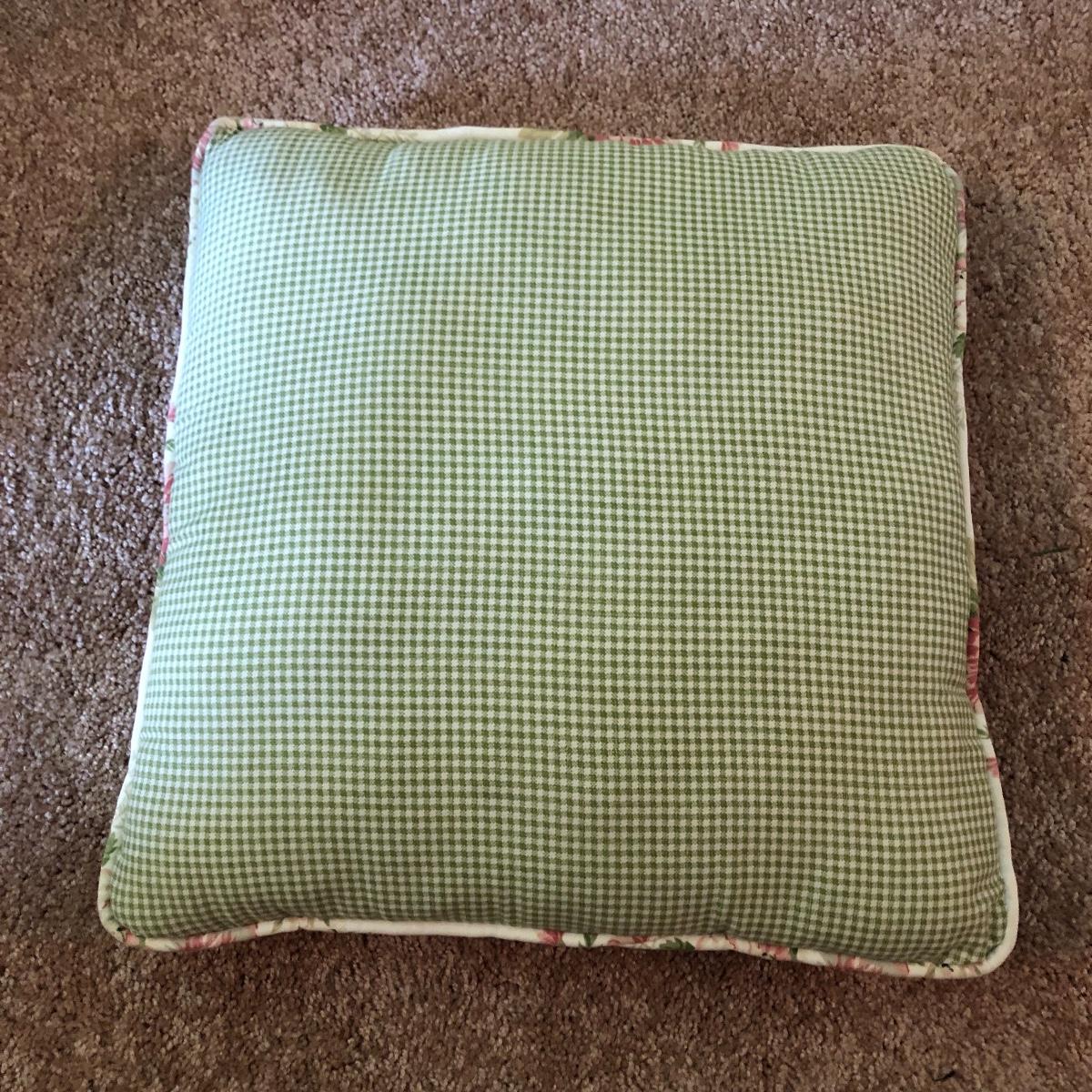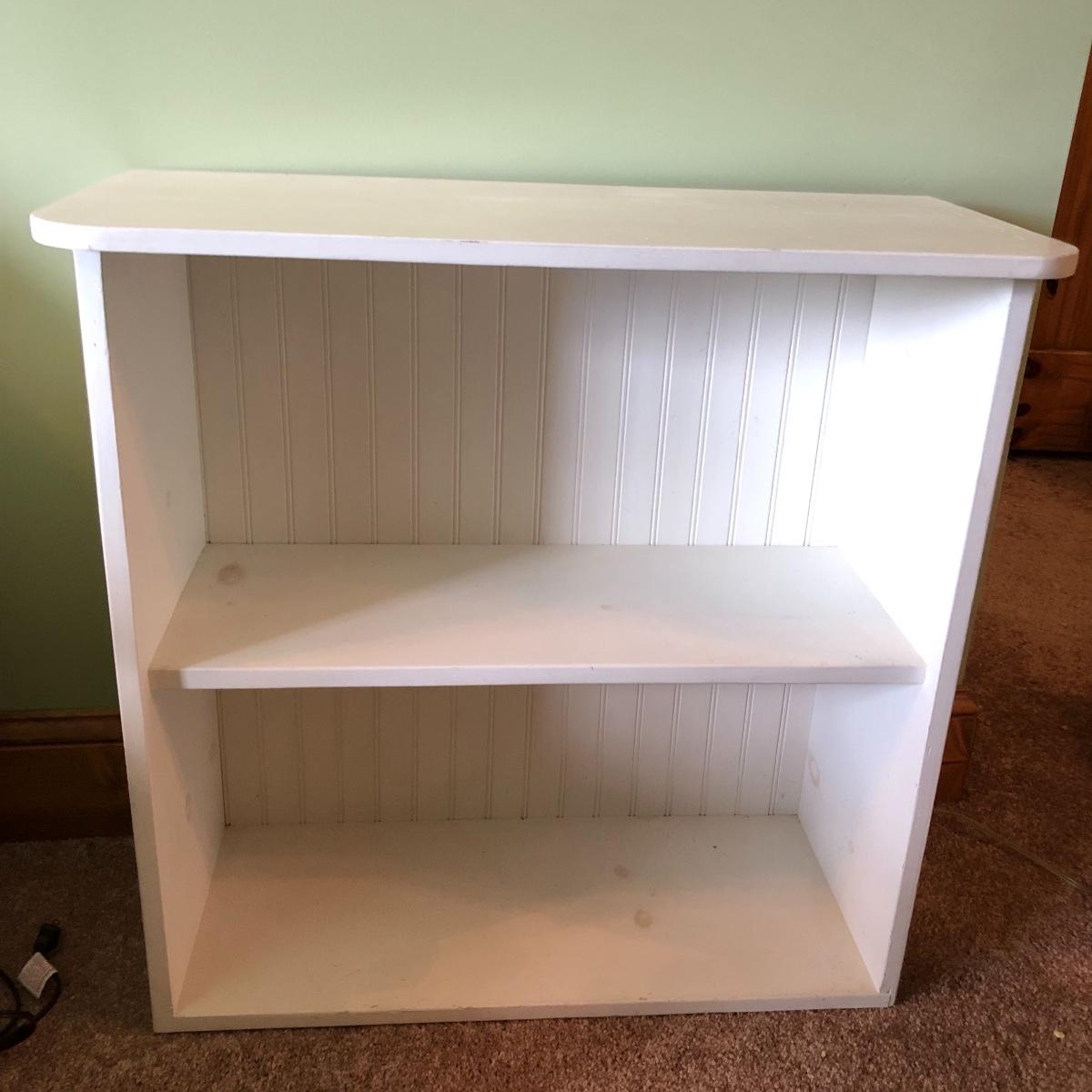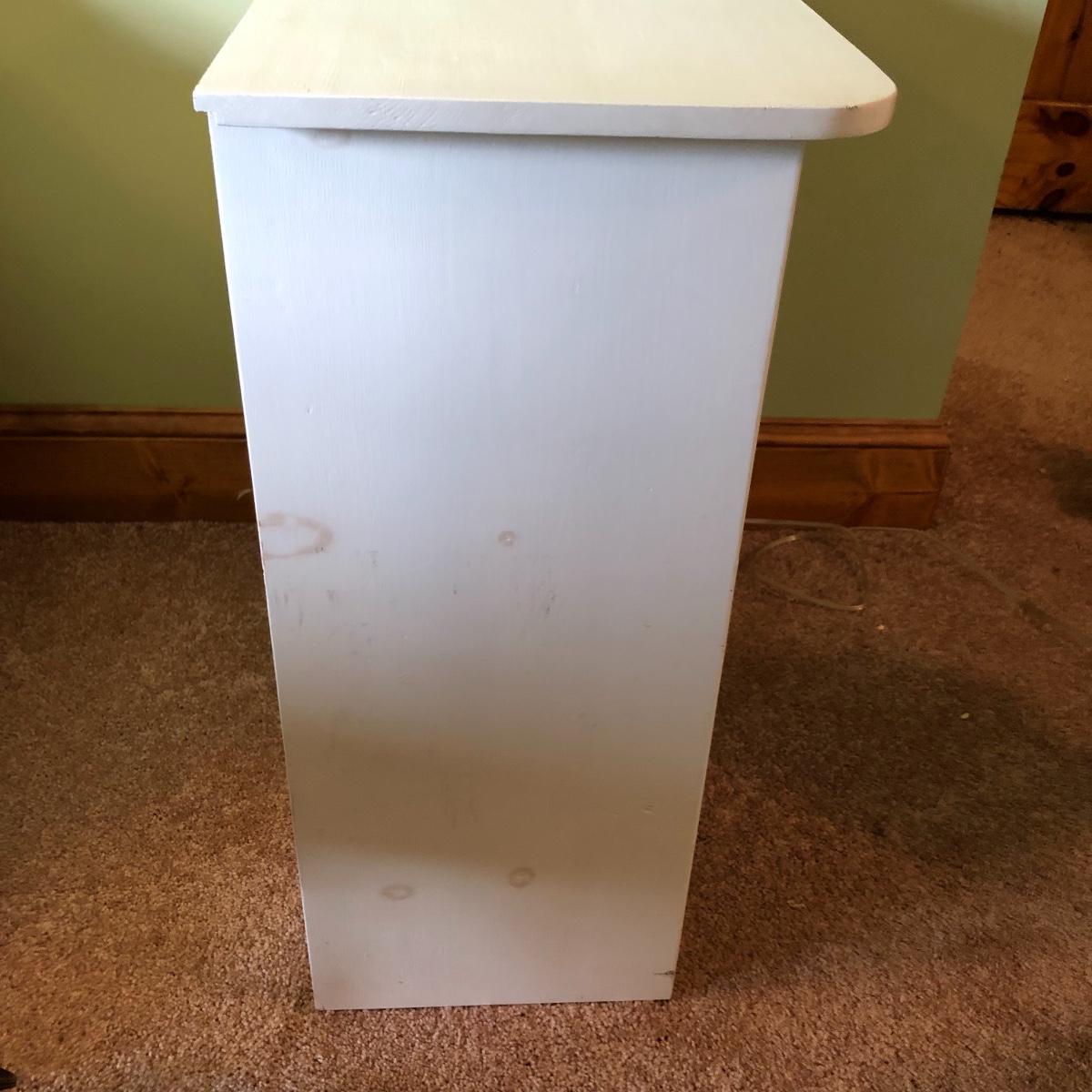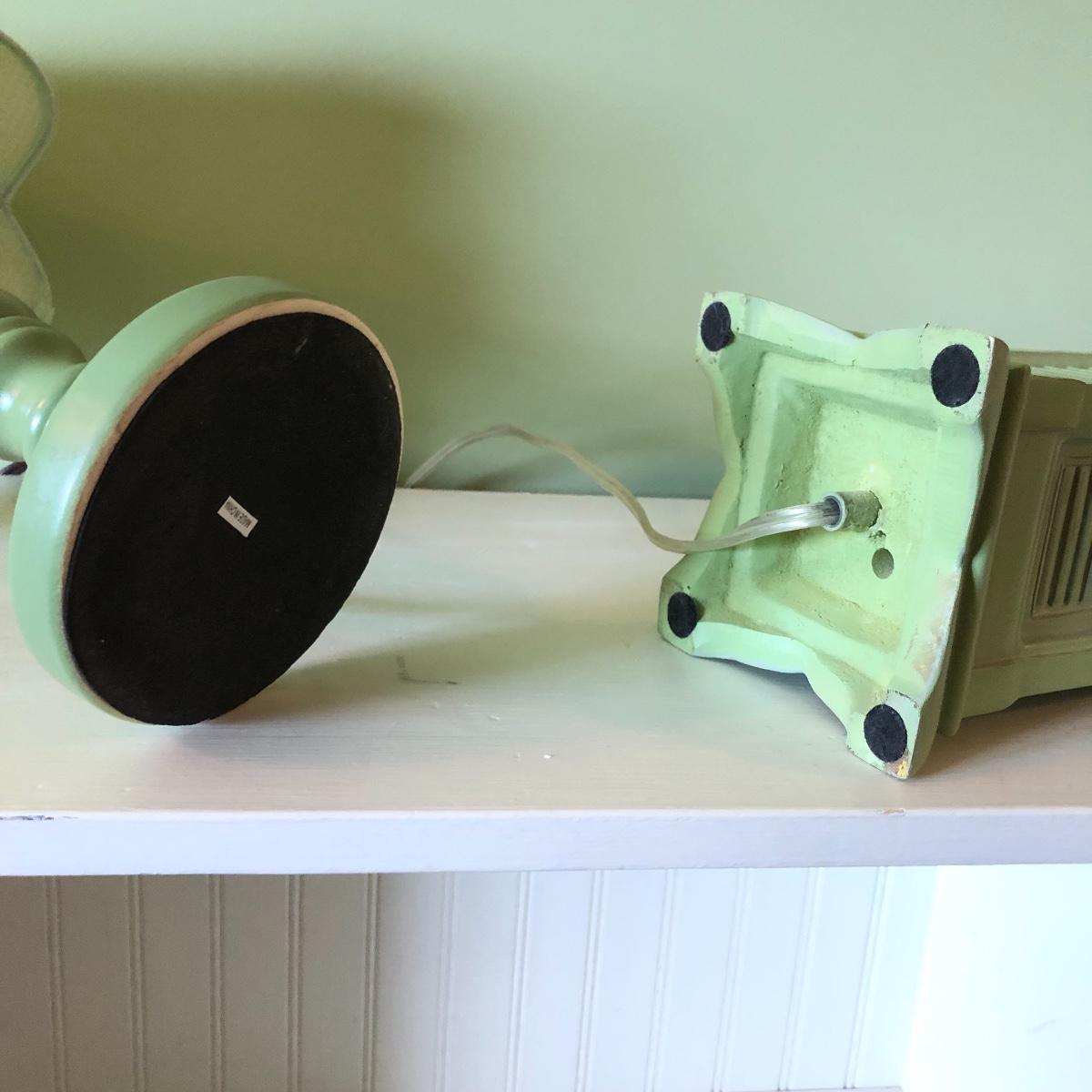 Add some color to your bedroom with this green and white decor. Lot includes two lamps, wooden coatrack, pillow, extra lampshade and a white wooden bookshelf. Bookshelf measures 13” x 29” x 28”.