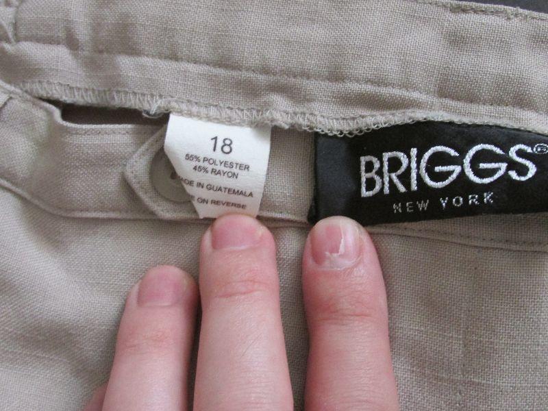 Tan Briggs NY pants. Size 18. No significant wear noticed.