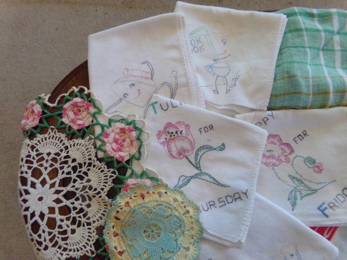 EMBROIDERED KITCHEN TOWELS, TABLECLOTHS, DOILIES AND MORE